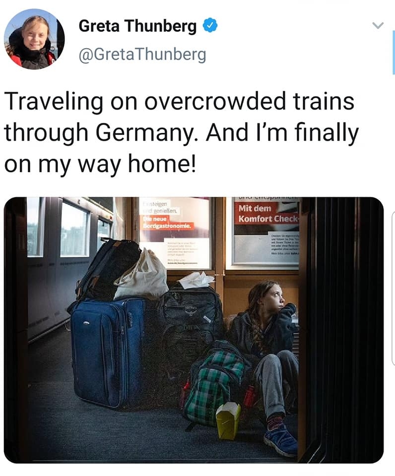 Razvpita aktivistka Greta na poti domov v vlaku pozirala v prostoru...