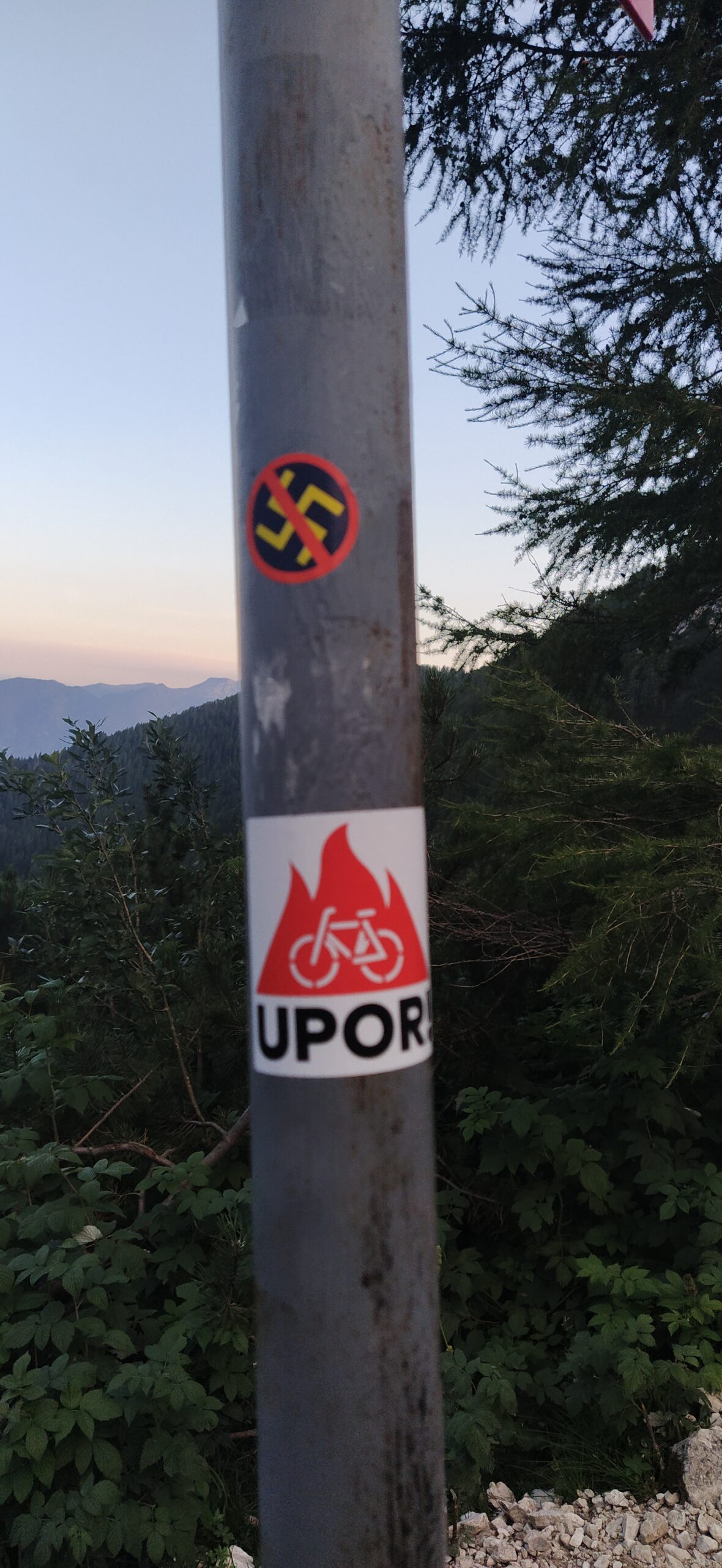 Ogorčenost pa še narašča ob dejstvu, da so se levičarski protestniki sedaj spravili še nad planinske smerokaze, saj so jih opremili z nalepkami s simboli kolesarskih protestnikov. Kar je pravzaprav le korak do vandalizma in dokaz, da aktivisti ne poznajo niti splošnega, kar šele gorskega bontona. Več fotografij si lahko ogledate spodaj.