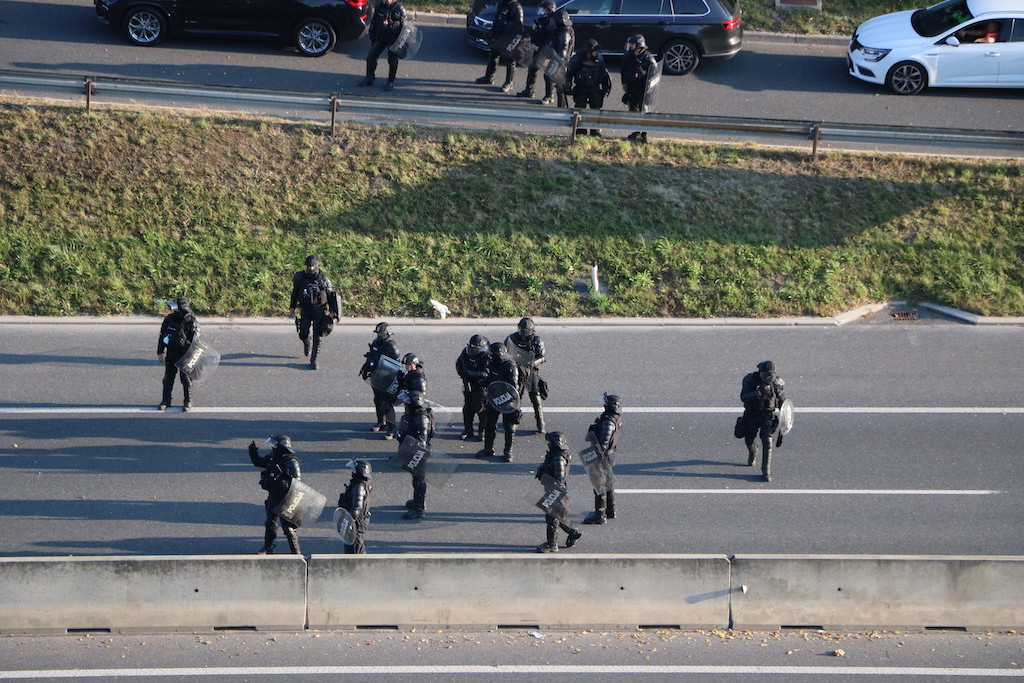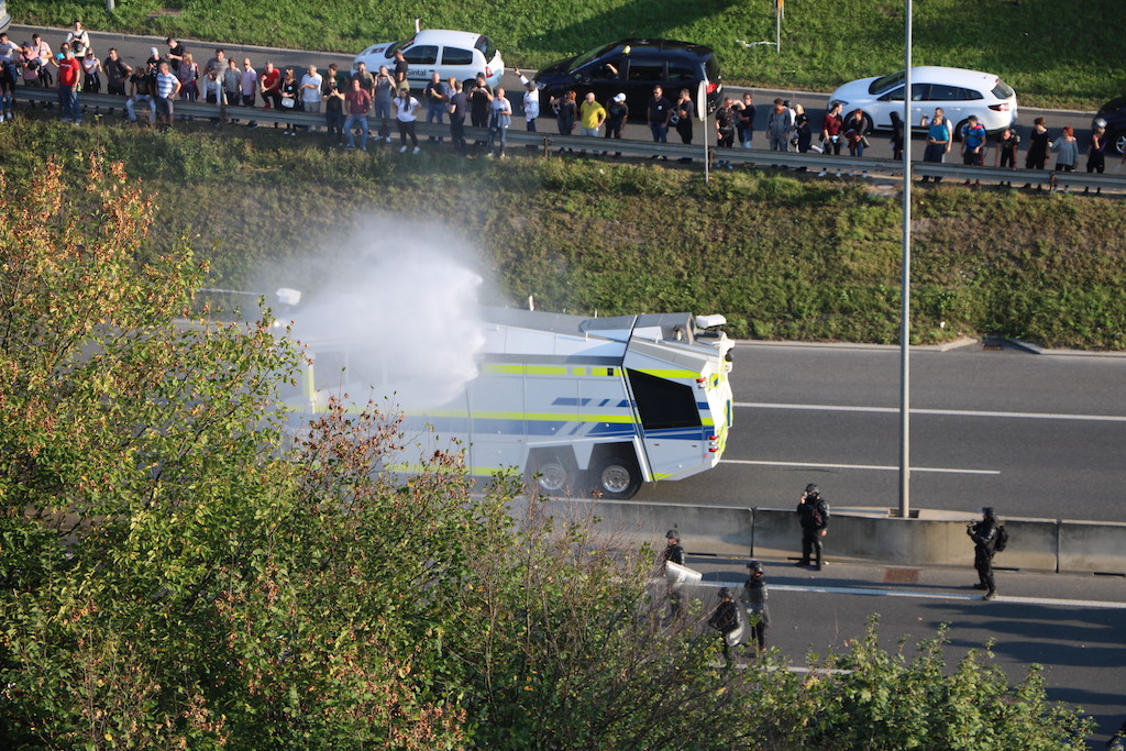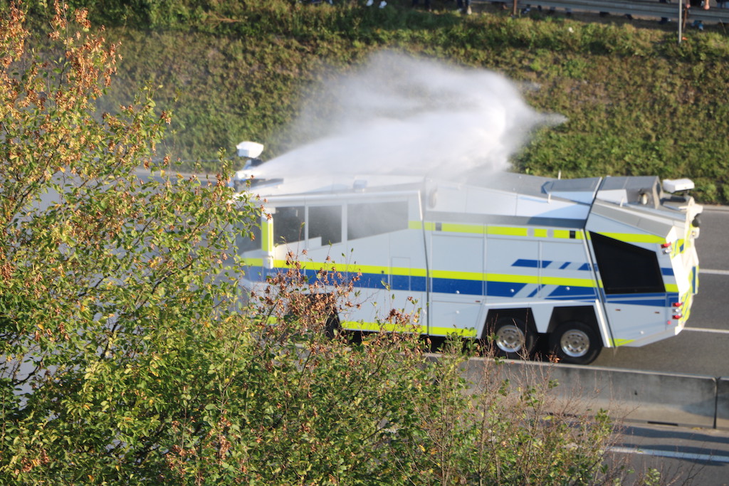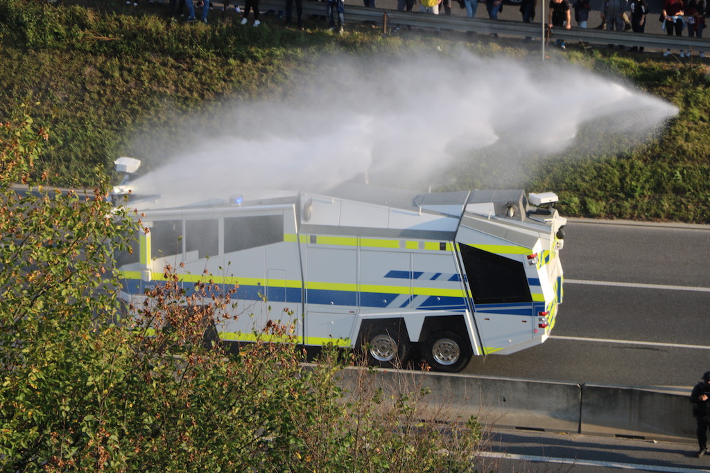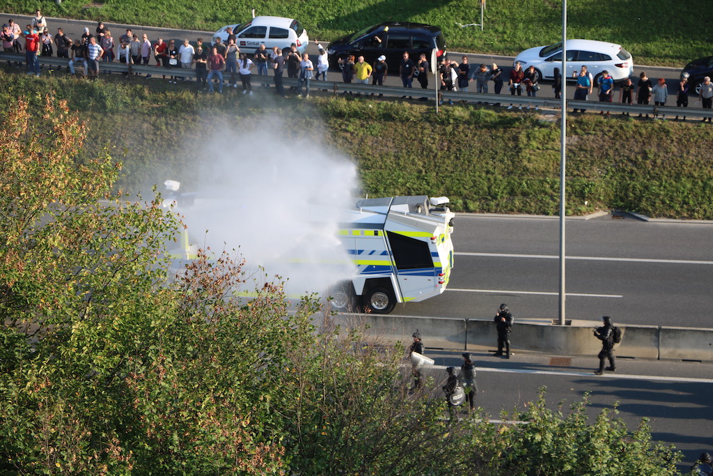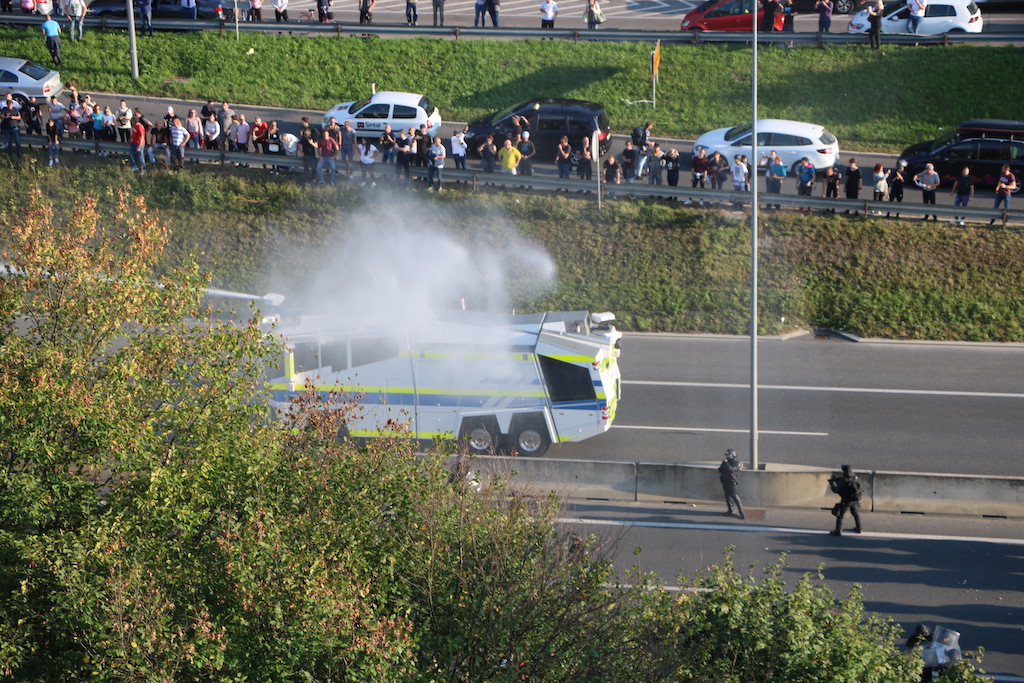 Policija je protestnike večkrat opozorila, da bo uporabila prisilna sredstva. Ker se niso odzvali, je policija uporabila solzivec in vodni top.