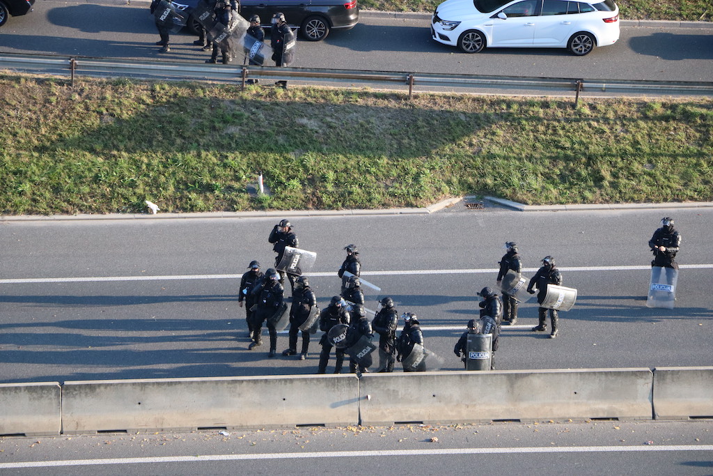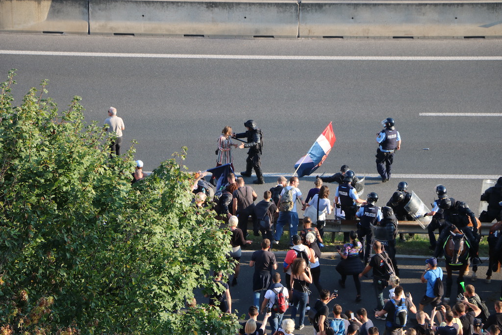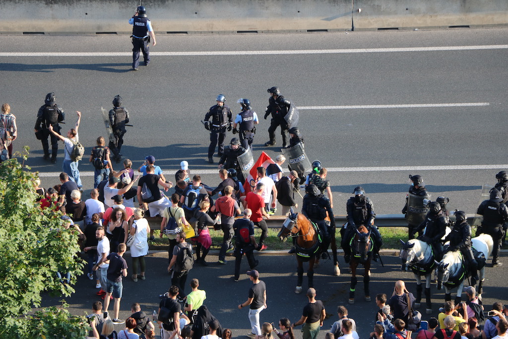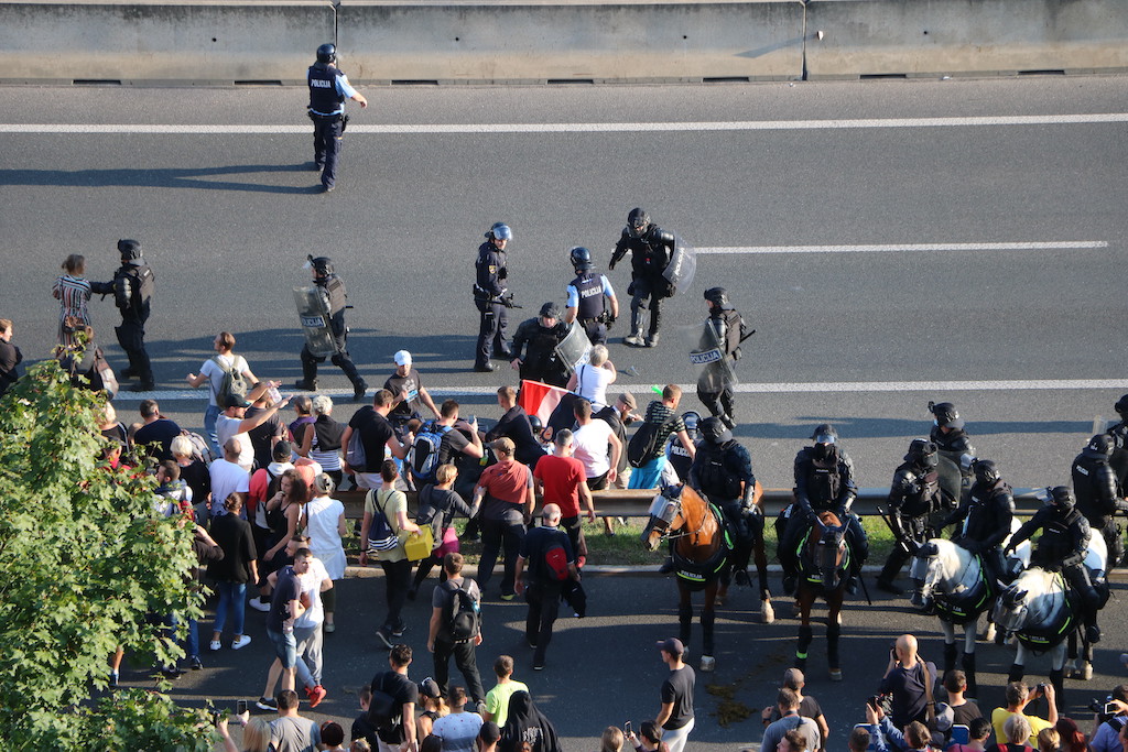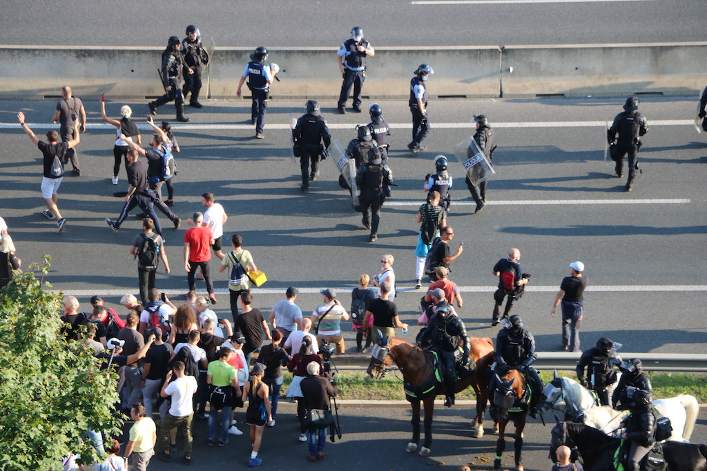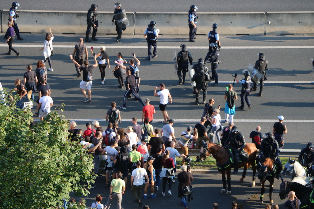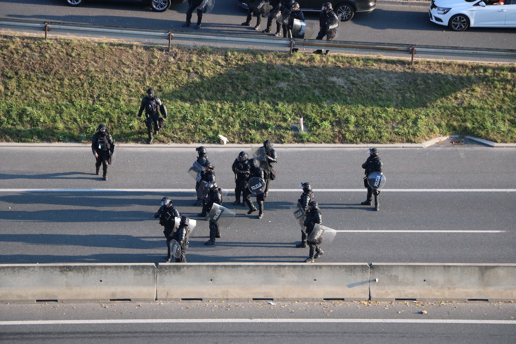 Policija je protestnike večkrat opozorila, da bo uporabila prisilna sredstva. Ker se niso odzvali, je policija uporabila solzivec in vodni top.