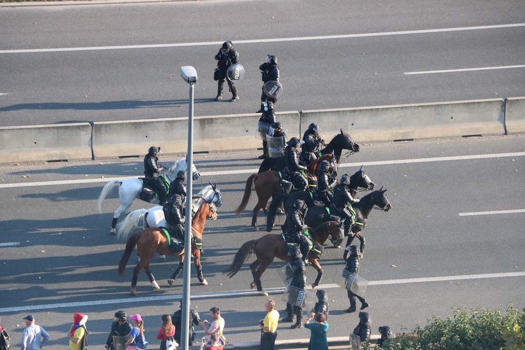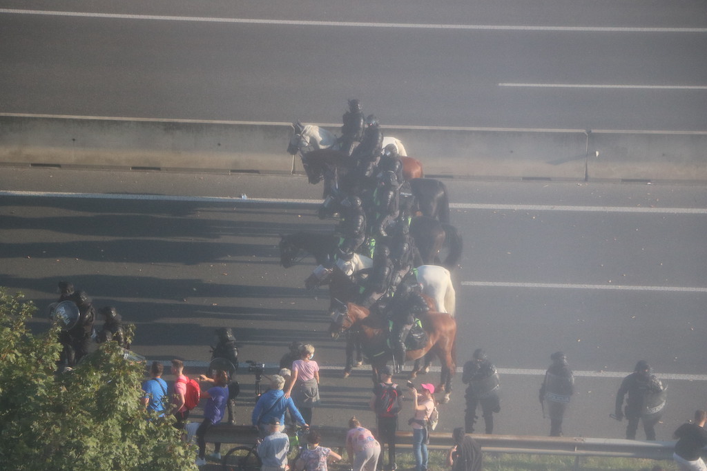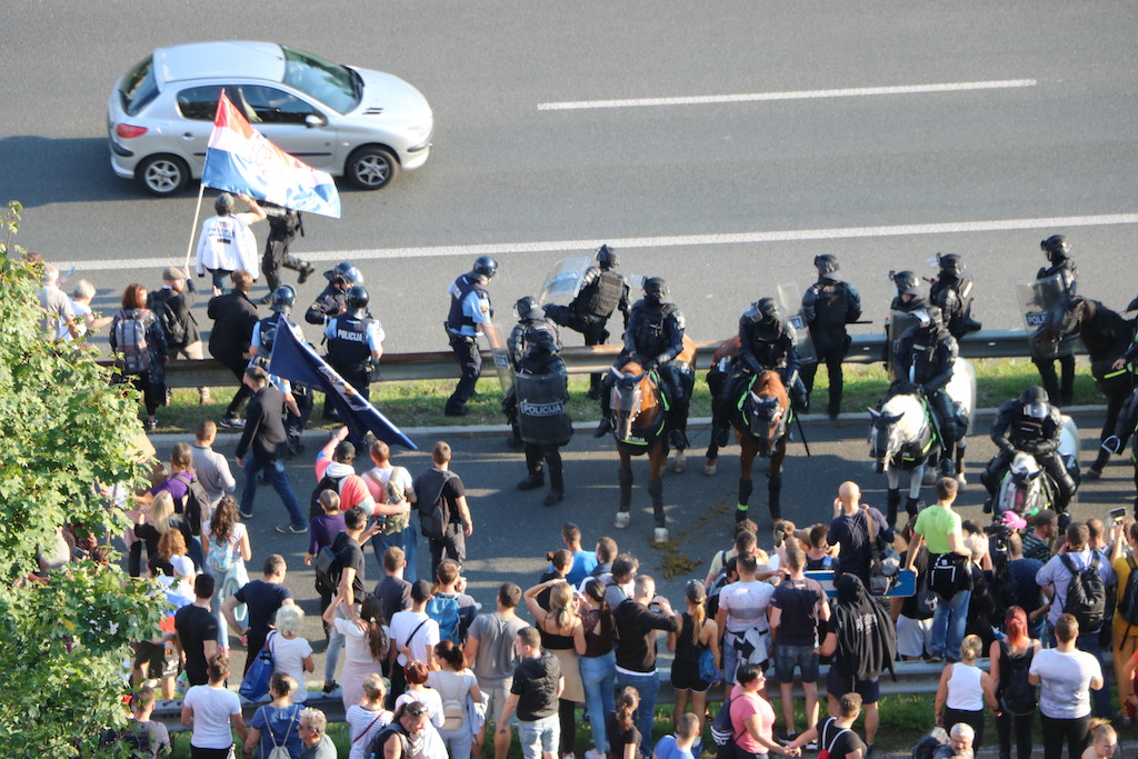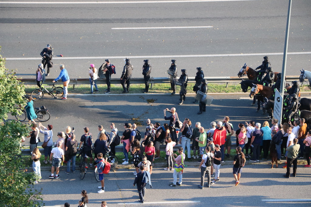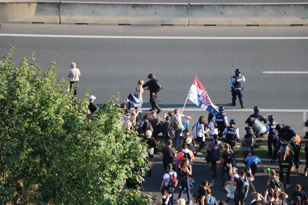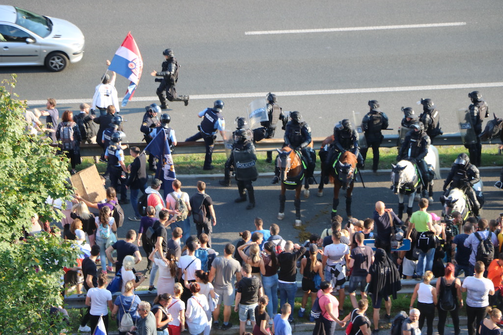 Policija je protestnike večkrat opozorila, da bo uporabila prisilna sredstva. Ker se niso odzvali, je policija uporabila solzivec in vodni top.