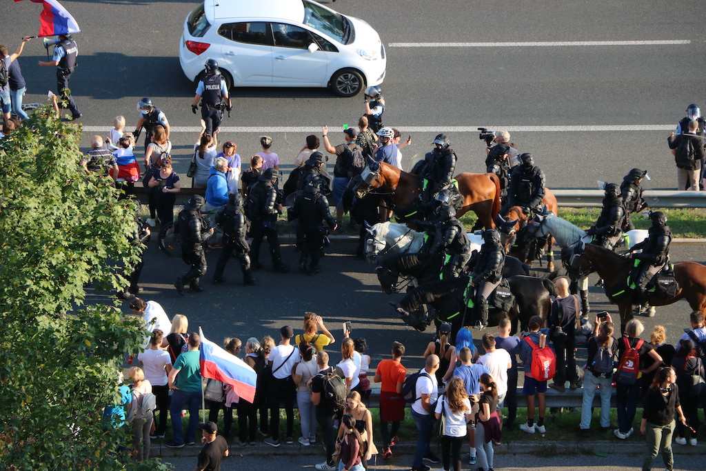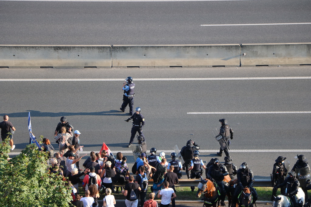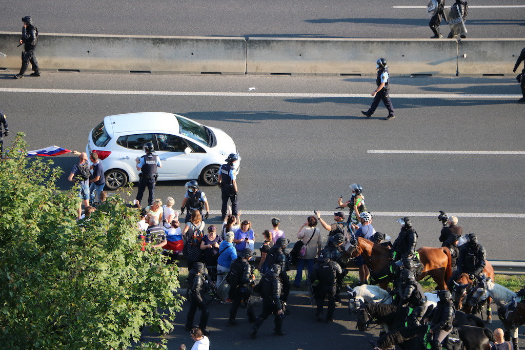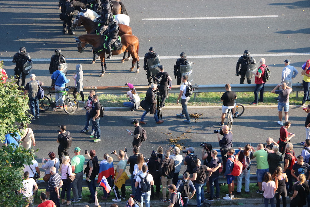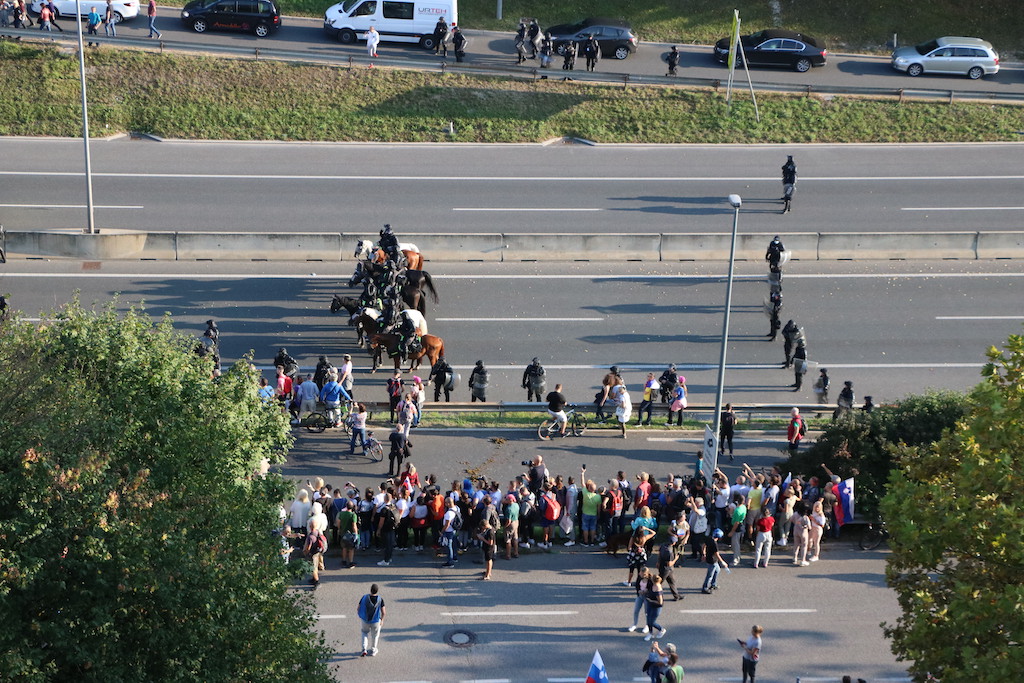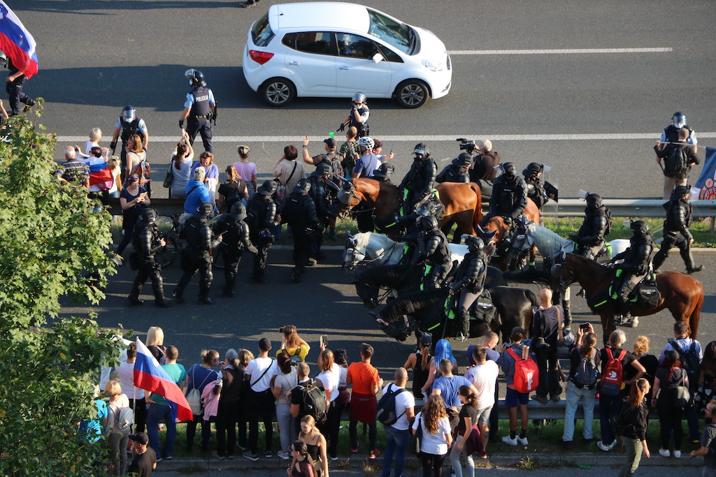 “Od danes naprej vsak zdravnik, ki bo še cepil enega slovenskega državljana – vam jaz obljubljam, bo v kratkem času klican na vojaško sodišče,” je zagrozil nastopajoči na protestu, ki poteka v Ljubljani. Enako je grozil novinarjem, kdo torej ogroža medijsko svobodo? Je ljudi s tovrstnimi prepričanji sploh varno spustiti na volišča? Preprečiti bi jim morali tudi oviranje prometa sredi Ljubljane. Policisti so zaradi zagotovitve varnosti pričeli z uporabo prisilnih sredstev, uporabili so namreč vodni top. “Vse pozivamo naj mirno zapustijo območje ljubljanske severne obvoznice in upoštevajo navodila in ukaze policistov” so sporočili.