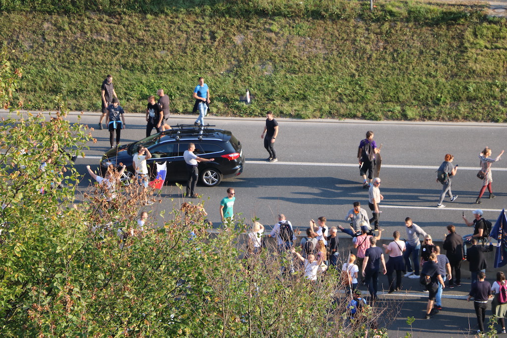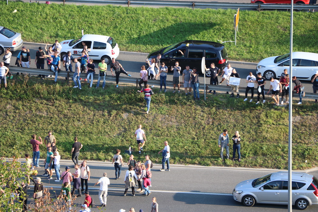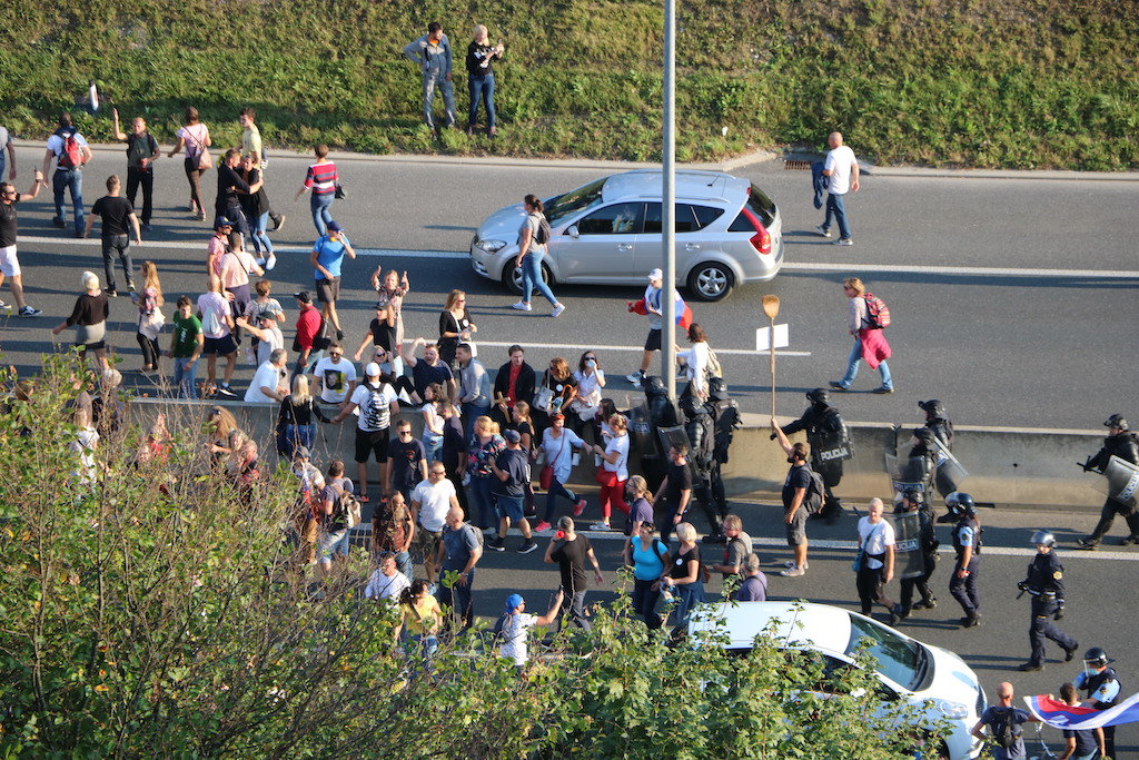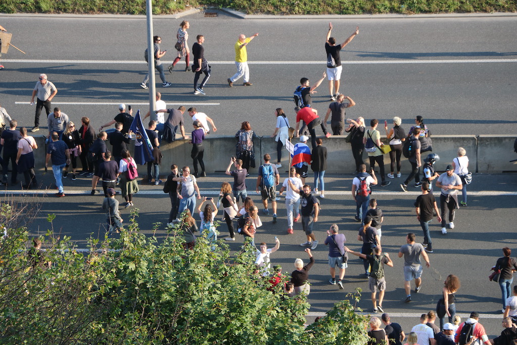 Na Trgu Republike so se danes protestniki zbrali že ob 13. uri. Stevanović je napovedal tudi blokado Slovenije, danes naj bi se lotili slovenskih cest. Za začetek so se okoli 16. ure spravili na ljubljansko cesto, na kateri je že tako ali tako veliko prometa, v prometnih konicah pa se nabirajo kolone. Govorniki so udeležence protesta tudi pozivali k neupoštevanju zaščitnih ukrepov – maske pa tam tako ali tako nihče ne nosi. Pravzaprav je težko razumeti, da to in pa dejstvo, da protest ni prijavljen, ni dovolj dober razlog, da bi policija protestnike razgnala. Sicer pa tudi petkovi neprijavljeni protesti, ki jih je bilo že 75, niso ravno zgleden primer reda in upoštevanja predpisov.