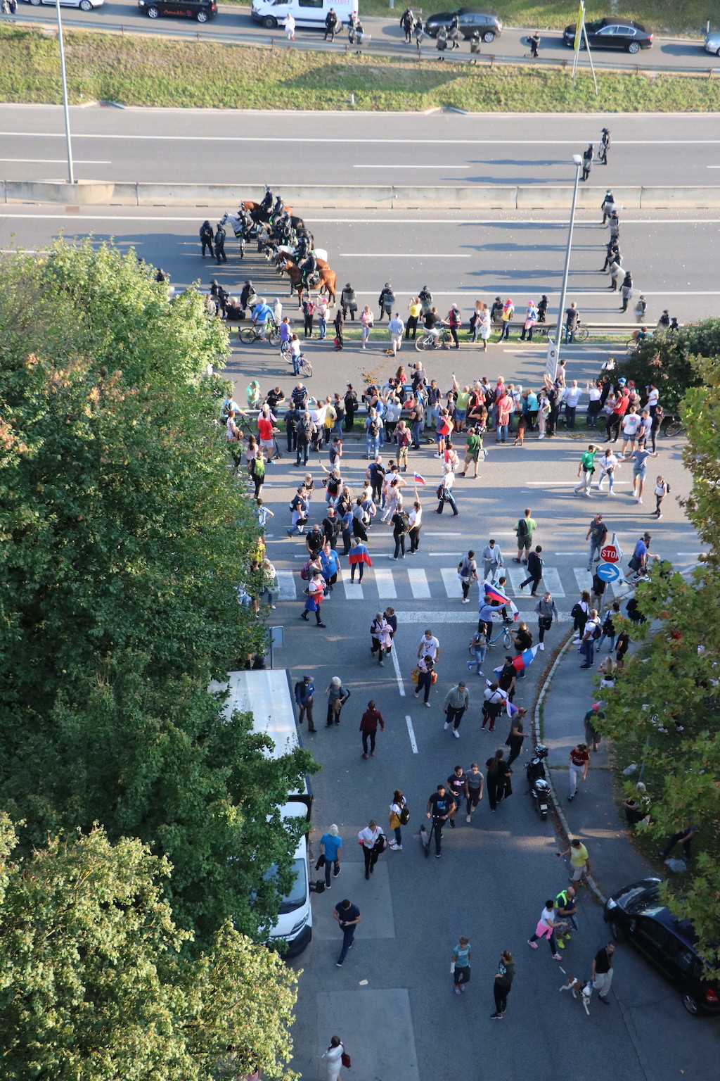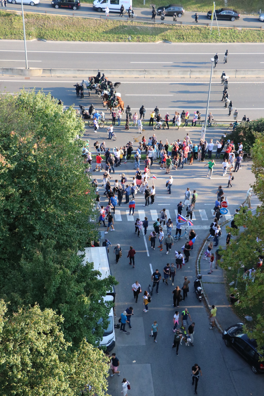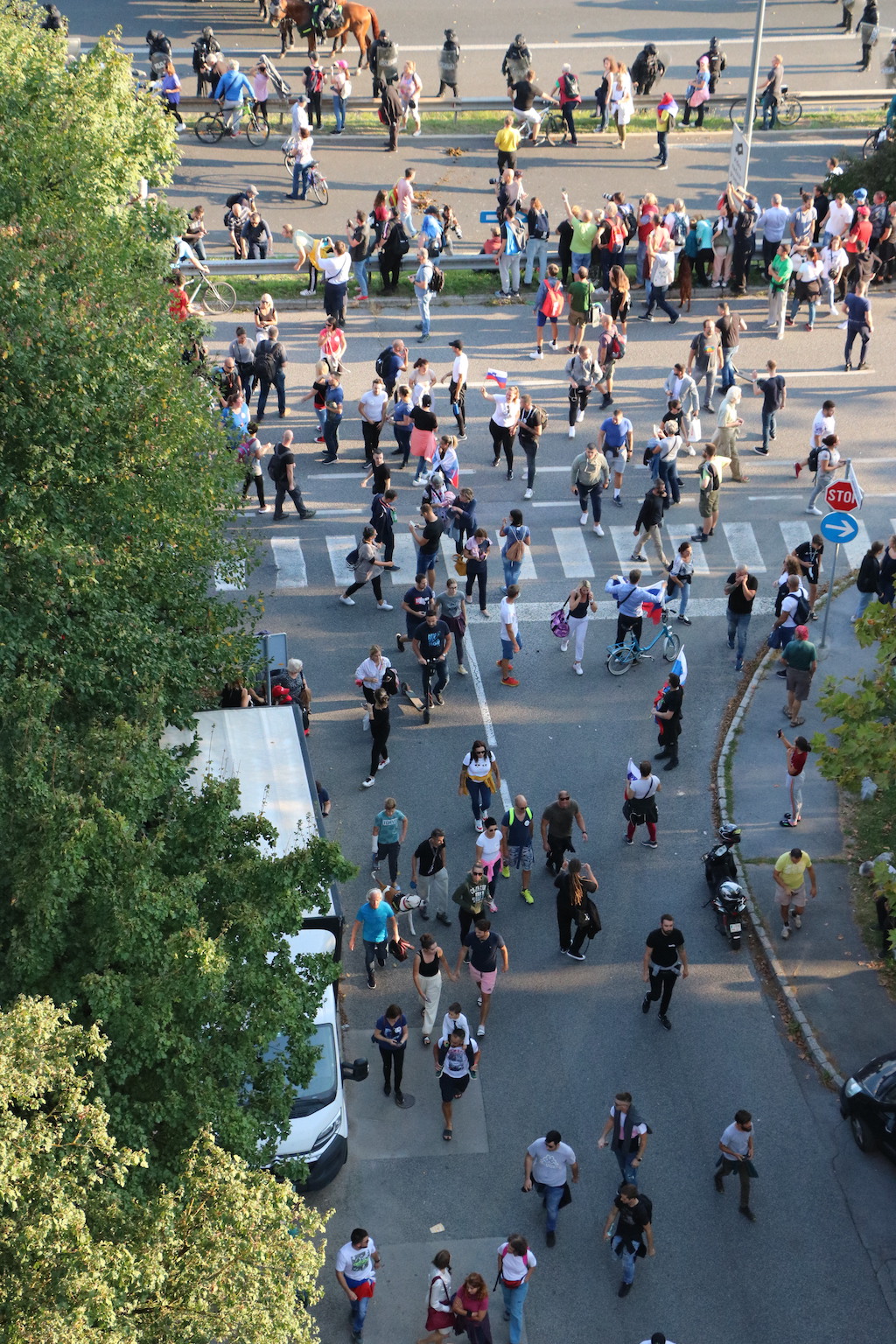 Na Trgu Republike so se danes protestniki zbrali že ob 13. uri. Stevanović je napovedal tudi blokado Slovenije, danes naj bi se lotili slovenskih cest. Za začetek so se okoli 16. ure spravili na ljubljansko cesto, na kateri je že tako ali tako veliko prometa, v prometnih konicah pa se nabirajo kolone. Govorniki so udeležence protesta tudi pozivali k neupoštevanju zaščitnih ukrepov – maske pa tam tako ali tako nihče ne nosi. Pravzaprav je težko razumeti, da to in pa dejstvo, da protest ni prijavljen, ni dovolj dober razlog, da bi policija protestnike razgnala. Sicer pa tudi petkovi neprijavljeni protesti, ki jih je bilo že 75, niso ravno zgleden primer reda in upoštevanja predpisov.