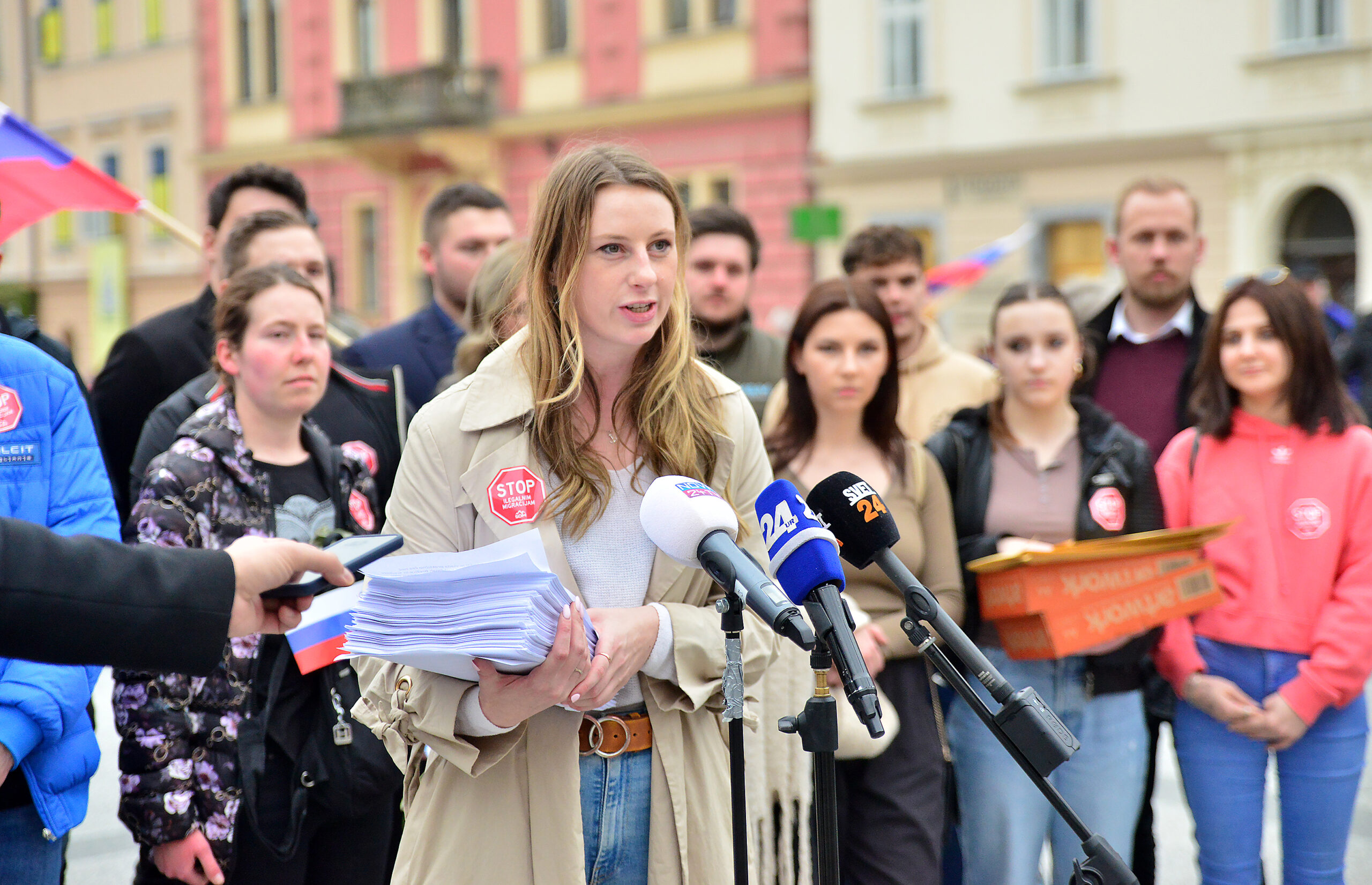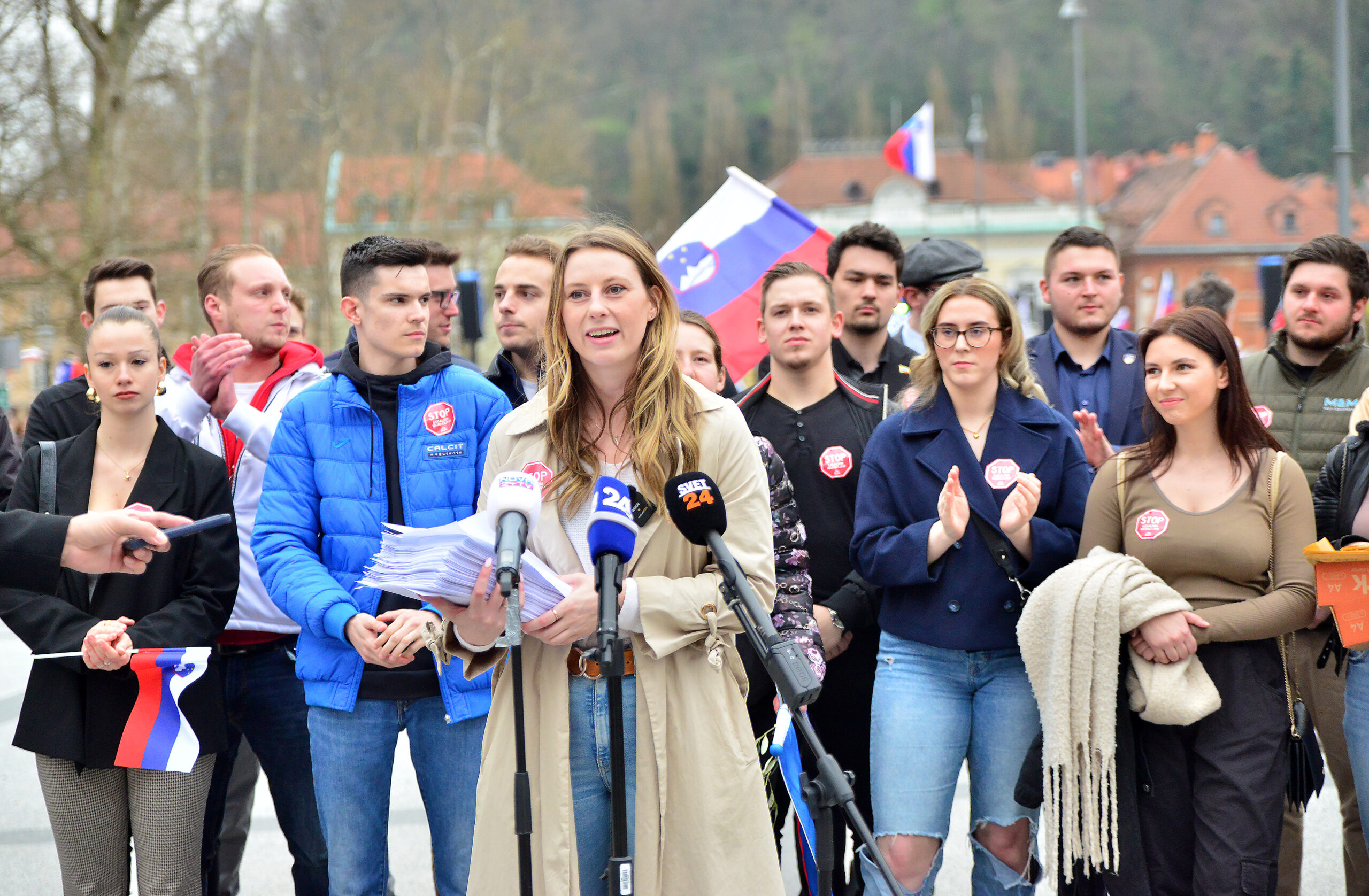 Včeraj je Zala Tomašič skupaj s člani Slovenske demokratske mladine predsedniku vlade dr. Robertu Golobu dostavila preko 11.600 zbranih podpisov spletne peticije proti postavitvi azilnih domov brez privolitve prebivalcev.