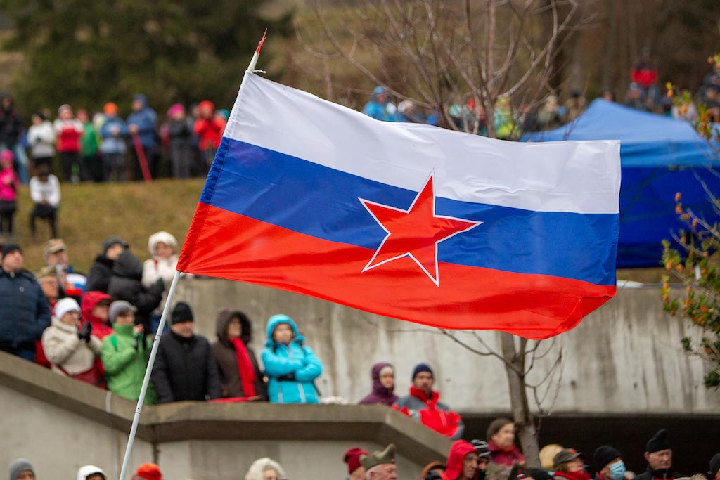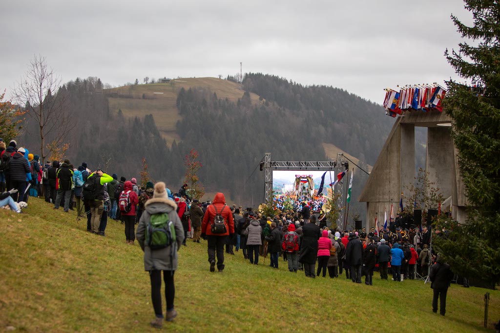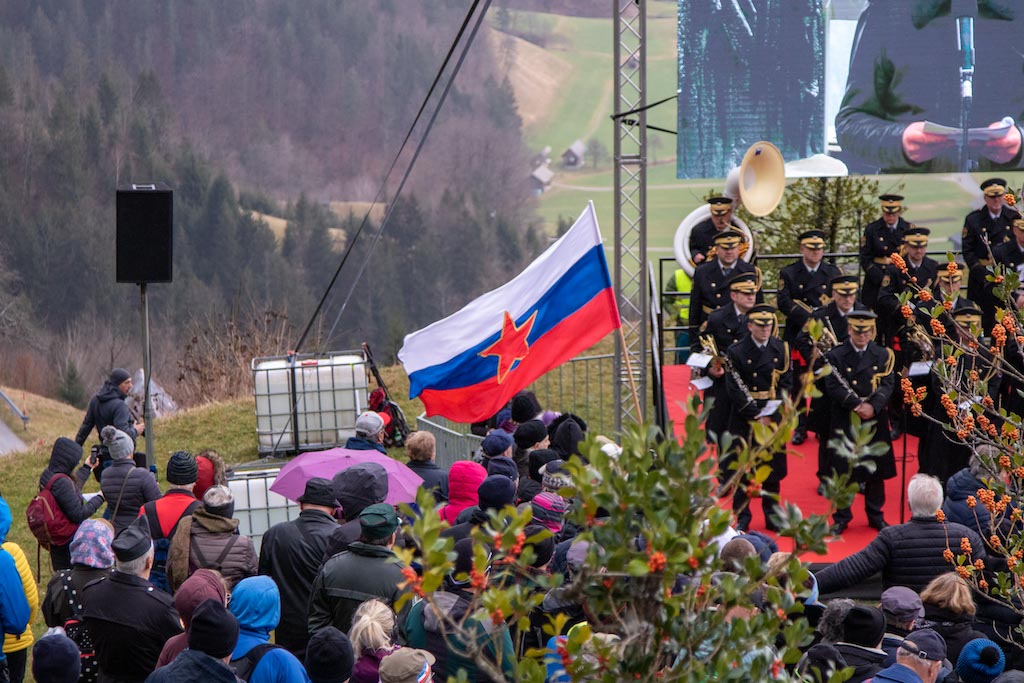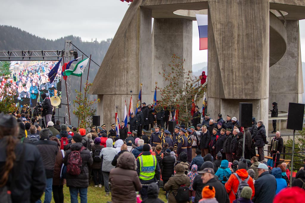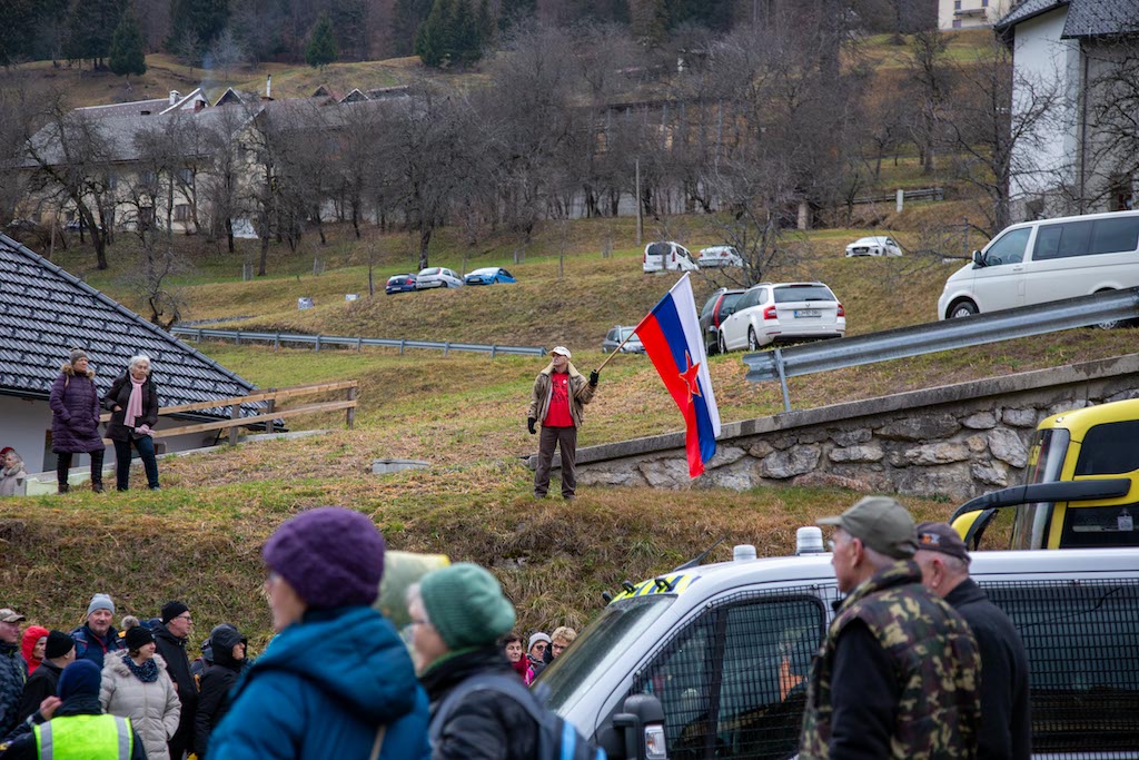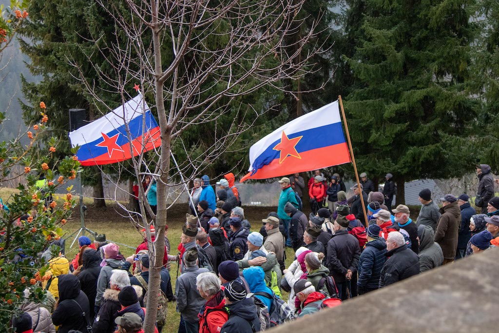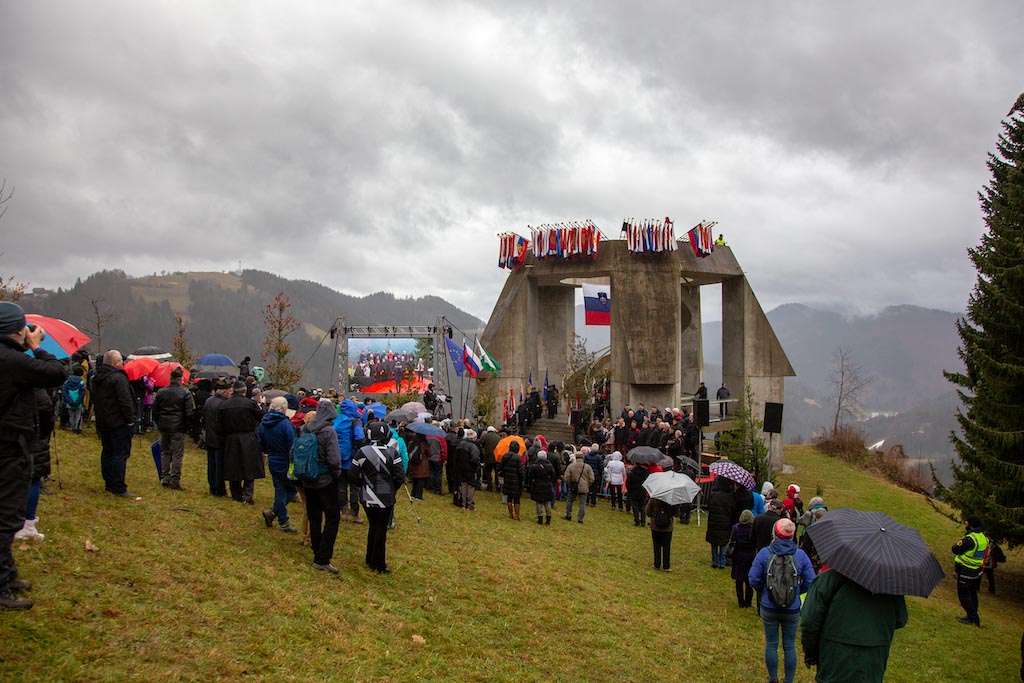 Kot že rečeno, so včeraj hriboviti svet okoli Dražgoš preplavile rdeče zvezde. Poplavo teh je občasno presekala kakšna slovenska zastava, ki pa je bila sicer med udeleženci v občutni manjšini.