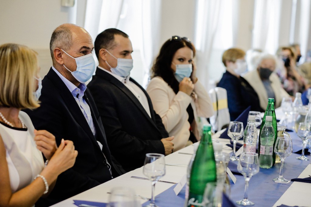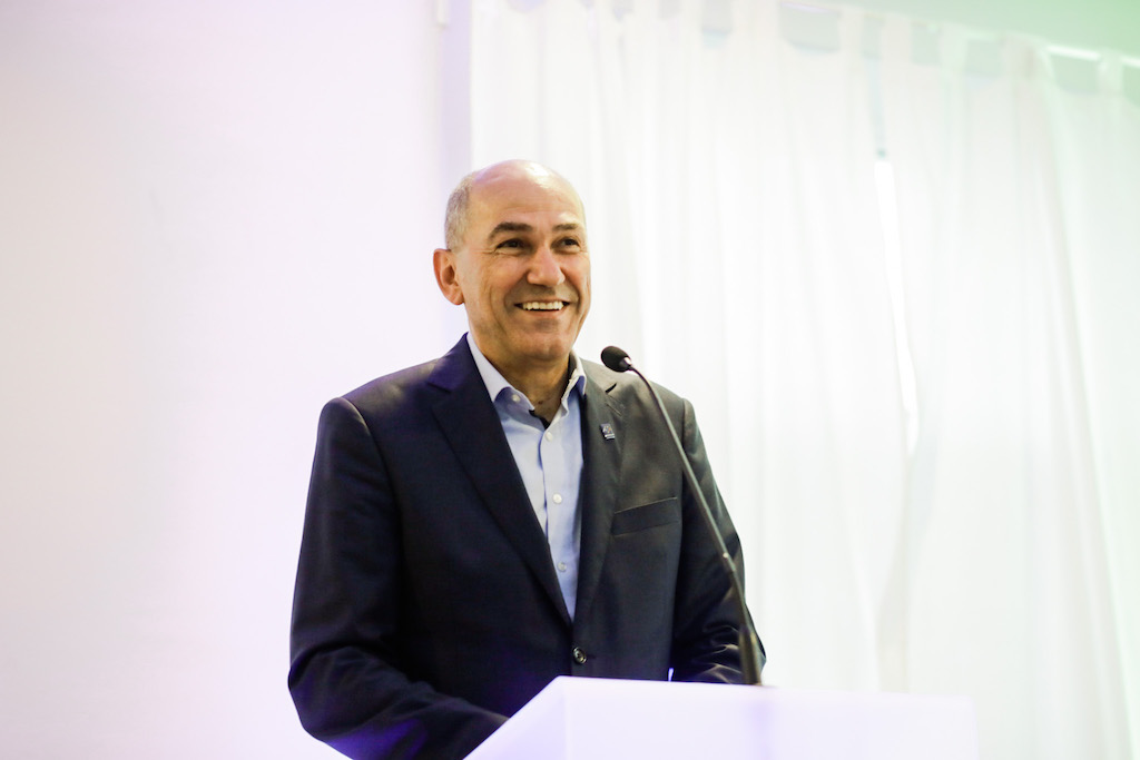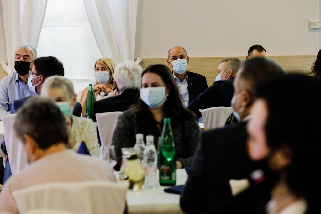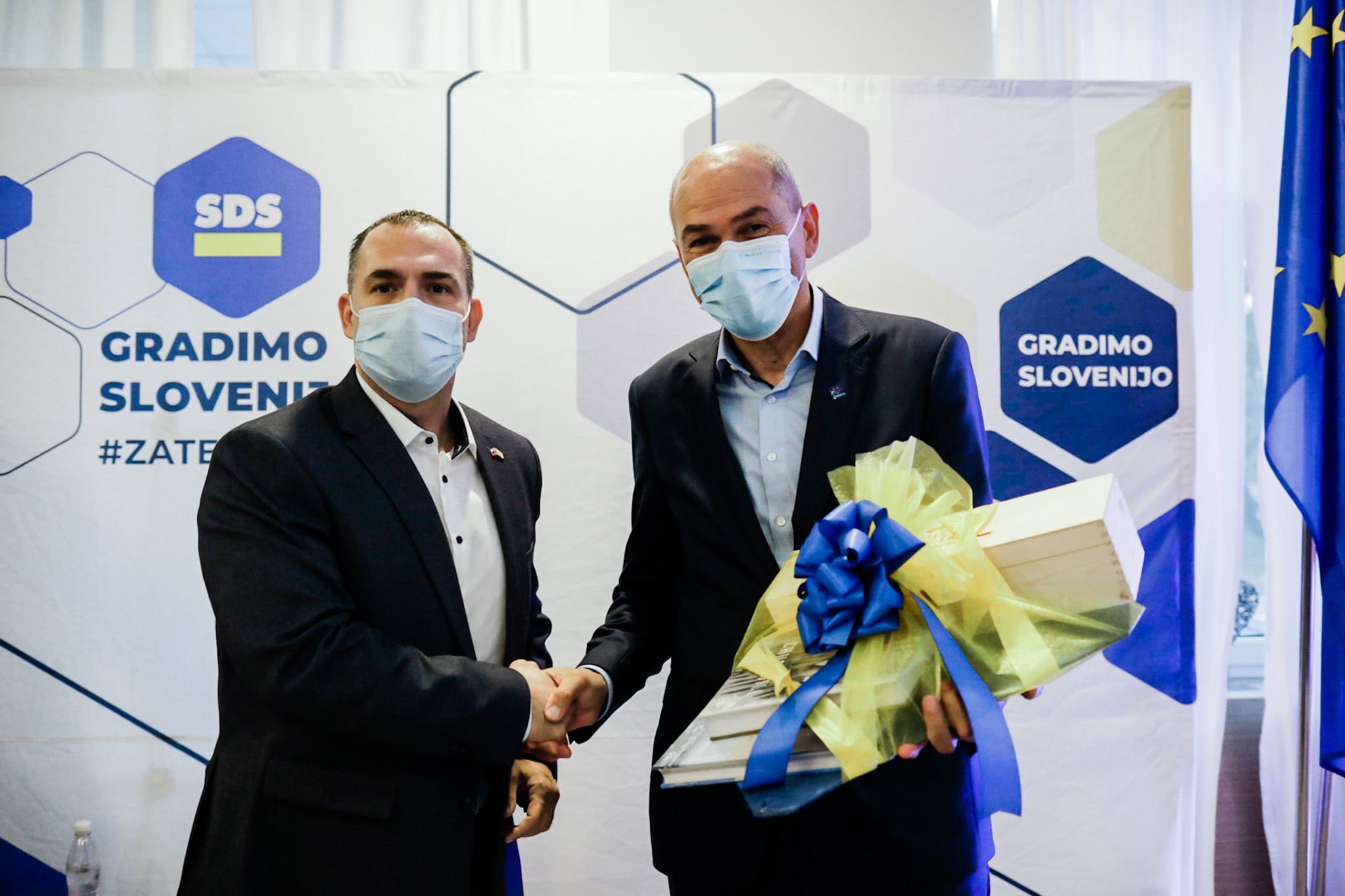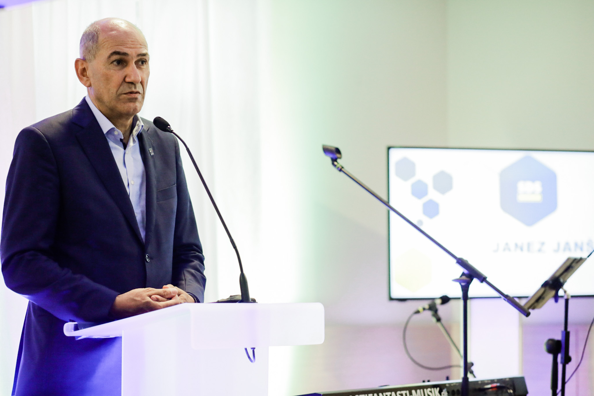PO predstavitvi evidentiranih kandidatov za poslance in poslanke v DZ ( Matej Arnuš, Ivan Cecek, Dejan Kaloh, Barbara Klajderič, Nataša Petek, Luka Simonič, Ksenija Šeligo, dr. Miran Ulbin) je zbrane nagovoril še predsednik stranke Janez Janša.