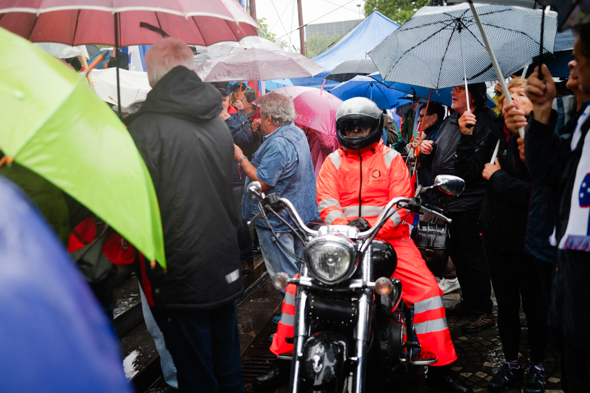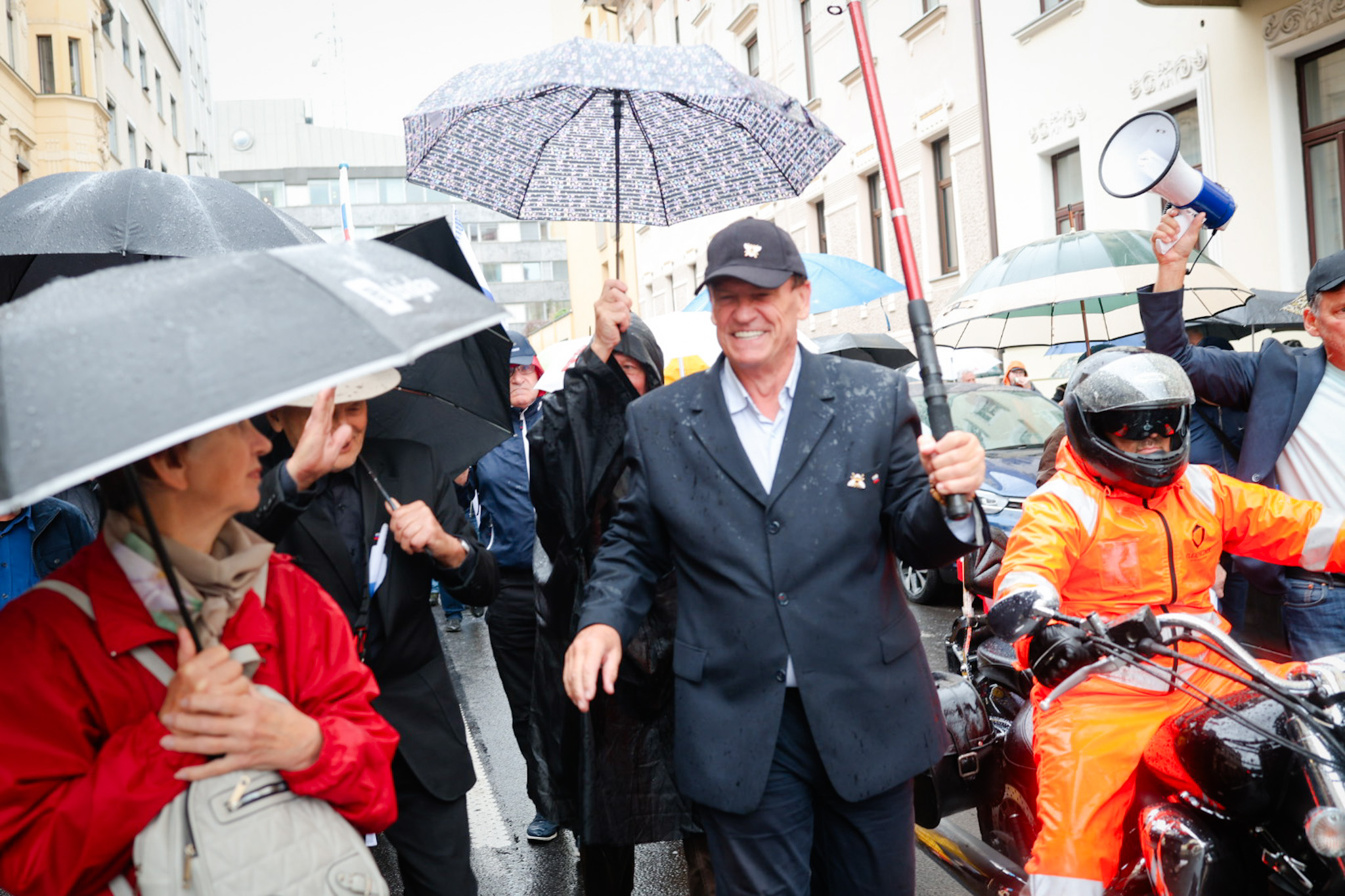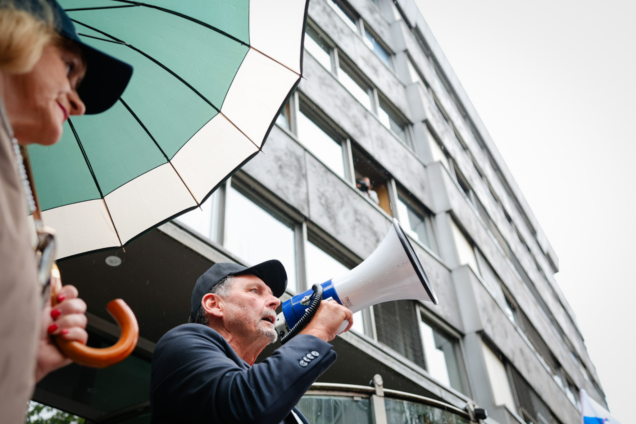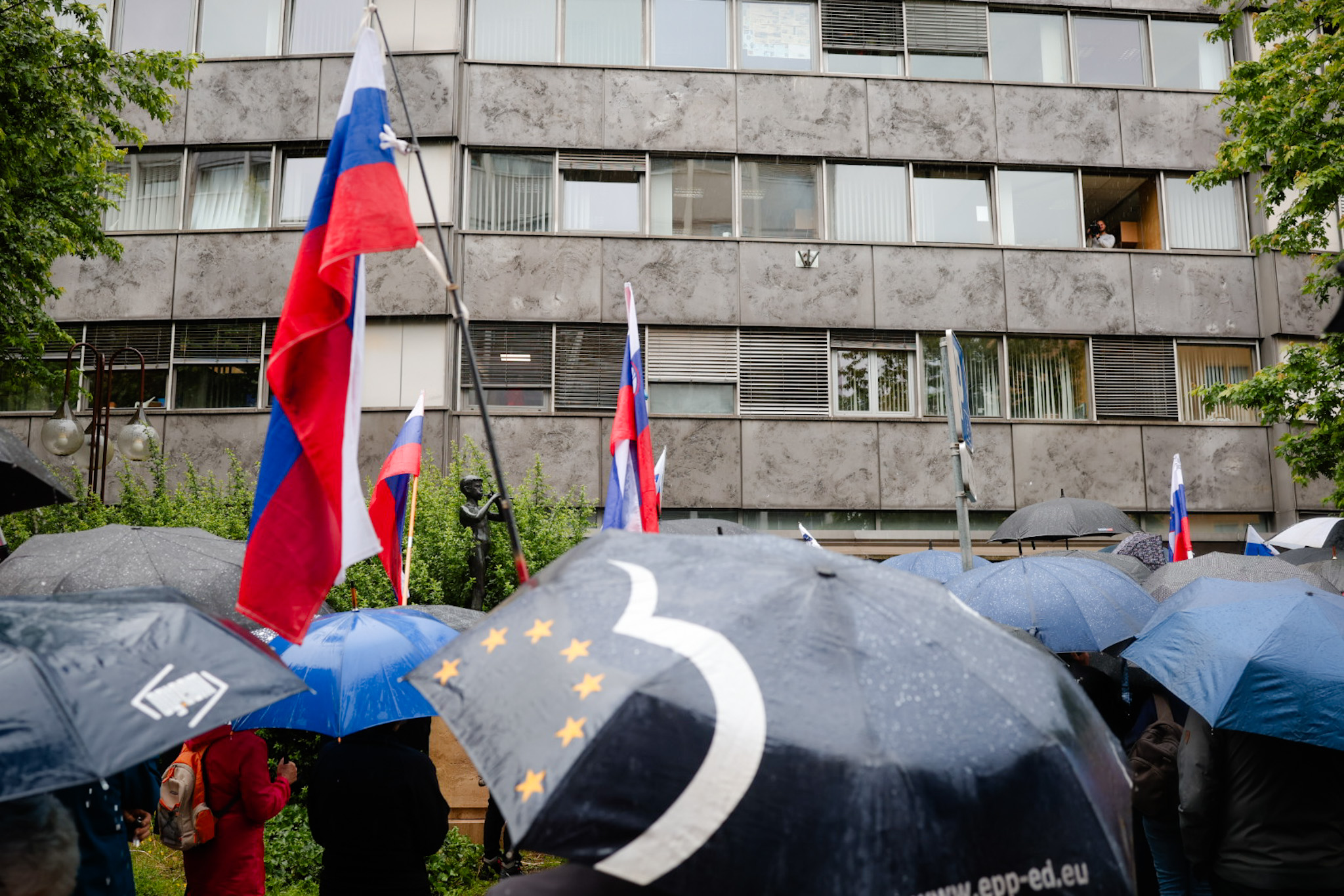 Protestniki so se še pred uradnim delom na Trgu republike tudi tokrat ustavili pred Radiotelevizijo Slovenija, kjer jih je nekaj, med njimi predsednik Inštituta 1. oktober Pavel Rupar, celo vstopilo v avlo radijske hiše.