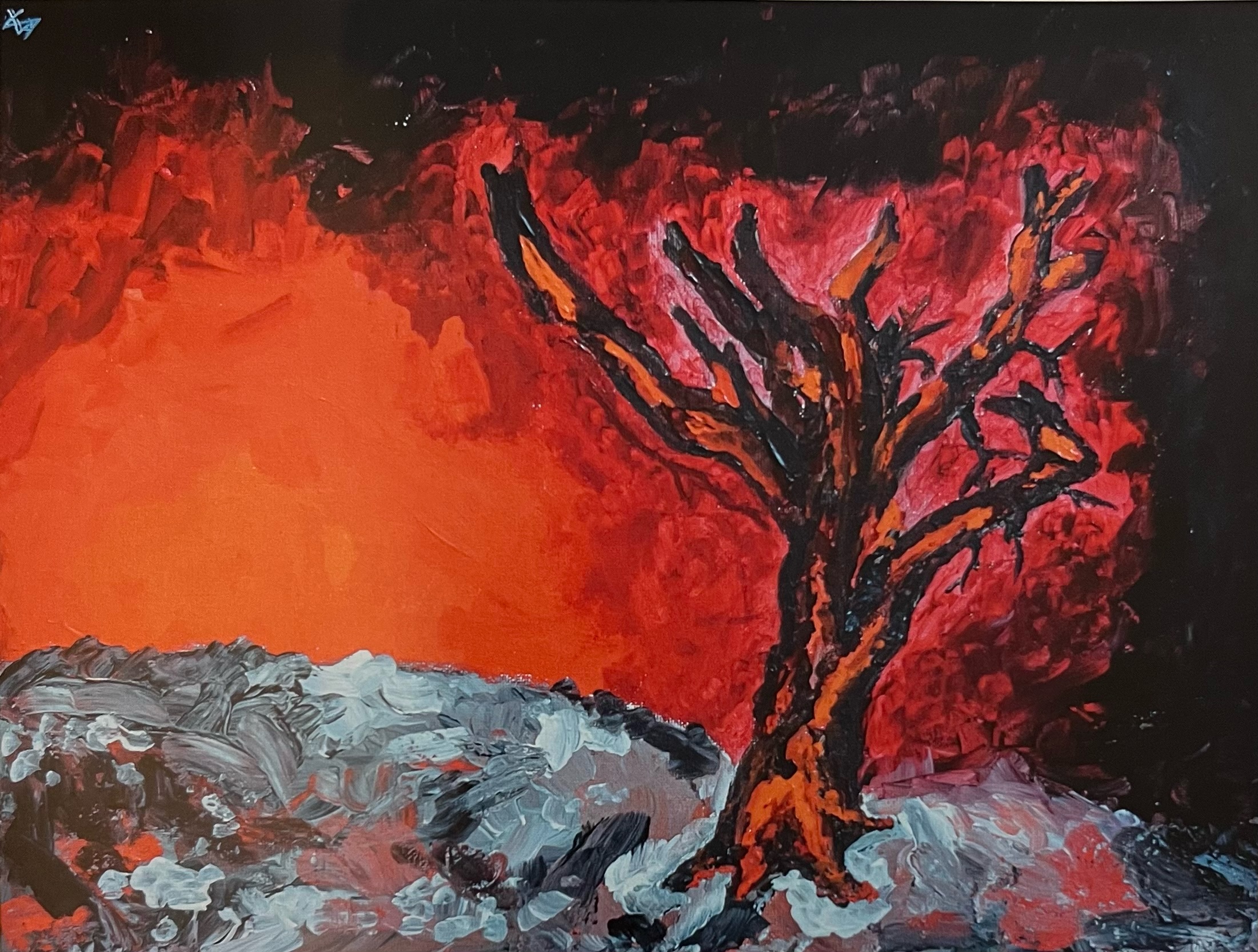 Pomislimo, da smo z današnjim brezobzirnim ravnanjem rablji naši rodni Zemlji. Tega perečega stanja se vse bolj zavedamo, in slikarka Aleksandra Tisa je tesnobna spoznanja izrazila v tem ciklu slik.Ognjeno rdeča in ogleno črna ozadja slik so apokaliptične slutnje o našem okolju. Zoglenelo drevo na pepelnato sivih kamnitih tleh je v zadušljivi tišini brezvetrja onemelo. Morje kot pravir nenehnega porajanja življenja je izdihnilo.Bitumenske barve komaj živahnih valov so aluzija na vse pogostejša onesnaženja morja, ki ga povzročajo razlitja nafte in druge uničujoče odplake.Na nizkem obzorju je od modrine neba komaj kaj ostalo, saj prevladujejo zloslutni črni oblaki z zamolklo razžarjenimi odsevi strašljivih oblakov. Na naslednji sliki se srečamo s silami razkroja, s podobo mrliško bledega dekleta, ki razpada pred našimi očmi, tako kot se v ozadju v ognjenih pramenih trga črno nebo.Izničenje življenja pa se kot pars pro toto vsega živega napoveduje z mrtvo čebelo. Kajti znanstvene prerokbe napovedujejo, da bo z izginotjem čebel zapečatena usoda življenja na modrem planetu. Na peti sliki so pred ognjeno izničenim ozadjem upodobljene tri gole in zamaskirane pepelnato sive človeške figure s praznimi pogledi. Poleg drž nas vznemirjajo rdeči trikotniki na zamaskiranih obrazih. Ob civilizacijski tradiciji nehote pomislimo na antično trojico park, ki so Heraklu izmerile in prekinile nit življenja, v tem primeru pa bodo naš vek na zemlji odmerile in prekinile »nit življenja«. Toda izrazen oziroma naslikan pesimizem v tem ciklu ima pogojni optimizem v smislu cikličnega utripanja življenja.Slikarka je ciklus pitijsko zaključila s šestim dejanjem drame. Kuščarja v položaju jin in jang govorita o večnem spreminjanju narave, ki se medsebojno dopolnjuje in razmnožuje. Plazilca v kroženju pa sta lahko iluzija na kataklizmično uničenje življenja na Zemlji. Toda metulj na zgornjem koncu slike, kot že antična prispodoba duše, tu pa napoved novega življenja, vnaša v ta ciklus optimistični zaključek oziroma obetavno prihodnost, a vse bo odvisno od ozaveščenosti dvonogega sesalca.Če se ozremo še na tehnično izvedbo tega cikla vidimo, da je motivika izvedena v barvni skladnosti. Poteze čopiča so samozavestne in sugestivno nemirno pastozne, a tudi risarsko pretanjene. S slednjim se je Aleksandra Tisa izkazala že pri neverjetnih osmih letih drugega osnovnošolskega razreda.Ne z eno sliko, ampak s ciklom, se je slikarka lotila pereče ekološke problematike iz svojega pogleda na svet, na katerega mlad človek zvečine gleda z optimizmom.Vladarji in gospodarji današnjega sveta pa bi morali nenehno zagotavljati upe in bodočnost – mladih rodov.Za Aleksandro Tiso velja da je zgodaj oziroma prezgodaj zaznala bolehanje naravnega okolja, kajti človek se je kot plesen že globoko zajede v božansko naravo. Družba kot celota mora delovati z izbranim poslanstvom in v tem primeru slikarka kot posameznik z likovnim medijem protestira nad neozaveščenim ravnanjem z našim okoljem. Še nekaj velja posebej naglasiti, in to na koncu, da je to razmišljanje s čopičem »zapisala« petnajstletna najstnica.In v tem so njeni presežki. Njena ozaveščenost nas nagovarja in opominja. S tem ciklom pa nam sporoča tudi preroško, kajti neobremenjene duše otrok so že od nekdaj veljale na pristne profete, ki jim velja vselej prisluhniti.