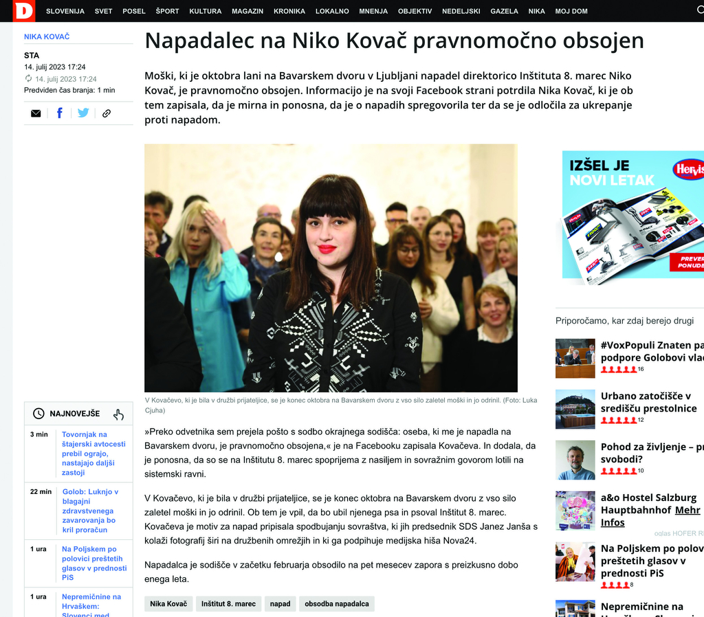 Da slovensko pravosodje deluje z dvojnimi vatli, zdaj že dobro vemo – ene vatle ima za prvorazredne, kot je omenjeni sorodnik komunističnega prvoborca Tomšiča, druge pa za drugorazredne državljane, ki nimajo prednikov v krvavo komunističnem okolju. Naj ob tem omenimo primer Janeza Brenceta, ki je bil za svoj komentar na družbenem omrežju pravnomočno obsojen. Po merilih slovenskega sodstva je bil ta namreč uperjen proti »napačnim«, in sicer Inštitutu 8. marec, ki jim je pred državnozborskimi volitvami napisal, »da za aktiviste, ki jih vodi Nika Kovač, že čisti dvocevko«. Da ne bo pomote, grožnje s smrtjo NE sodijo v demokratično urejene družbe in so kaznivo dejanje, opozarjamo pa na dvojna merila našega pravosodnega sistema. Na družbenem omrežju X se je glede omenjenih primerov oglasil tudi prvak opozicije Janez Janša, ki je zapisal: »Sodišče ugotovi, da je nekdo, ki bi ga umoril, neprišteven. In potem mirno dovoli, da taka oseba prosto hodi naokrog. Si predstavljate, da bi isti pozival k umoru Nike Kovač @8Marec? Vsaj 5 let zapora. To naj bi bilo moderno slovensko sodstvo. V resnici gre za orodje režima.« Sodišče je namreč v istem obdobju razsodilo, da je Brence »kriv, da je javno spodbujal sovraštvo, nasilje in nestrpnost, ki je temeljilo na političnem ali drugem prepričanju in je bilo storjeno z uporabo grožnje«. Kaznovan je bil z denarno kaznijo in o tem so poročali tudi osrednji mediji. Zanimivo je, da so tokrat o obeh zadevah glede groženj osrednji mediji poročali hkrati na način, kjer se še očitneje vidi njihova pristranost. Omenjeno dejstvo je urednik Spletnega časopisa Peter Jančič komentiral takole: “Naslov kaže, da mediju ni pomembno, kdo je bil obsojen, mu je pa zelo pomembno, da je menda član SDS. To je propaganden naslov, ki se zgodi, če urednika nastavi generalna sekretarka Svobode Vesna Vuković z Golobom. Zloraba oblasti.”