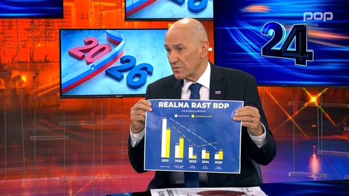 Ena najbolj kritičnih točk Janševe analize trenutnega stanja je gospodarska uspešnost države. Izpostavil je podatek, da je bila gospodarska rast Slovenije lani prvič po dolgem obdobju za kar 30 odstotkov nižja od evropskega povprečja. »To pomeni, da Evrope ne dohitevamo več, ampak zaostajamo. Dohiteva nas Hrvaška, ob še enem mandatu leve koalicije pa se nam bo močno približala celo Srbija,« je opozoril Janša.