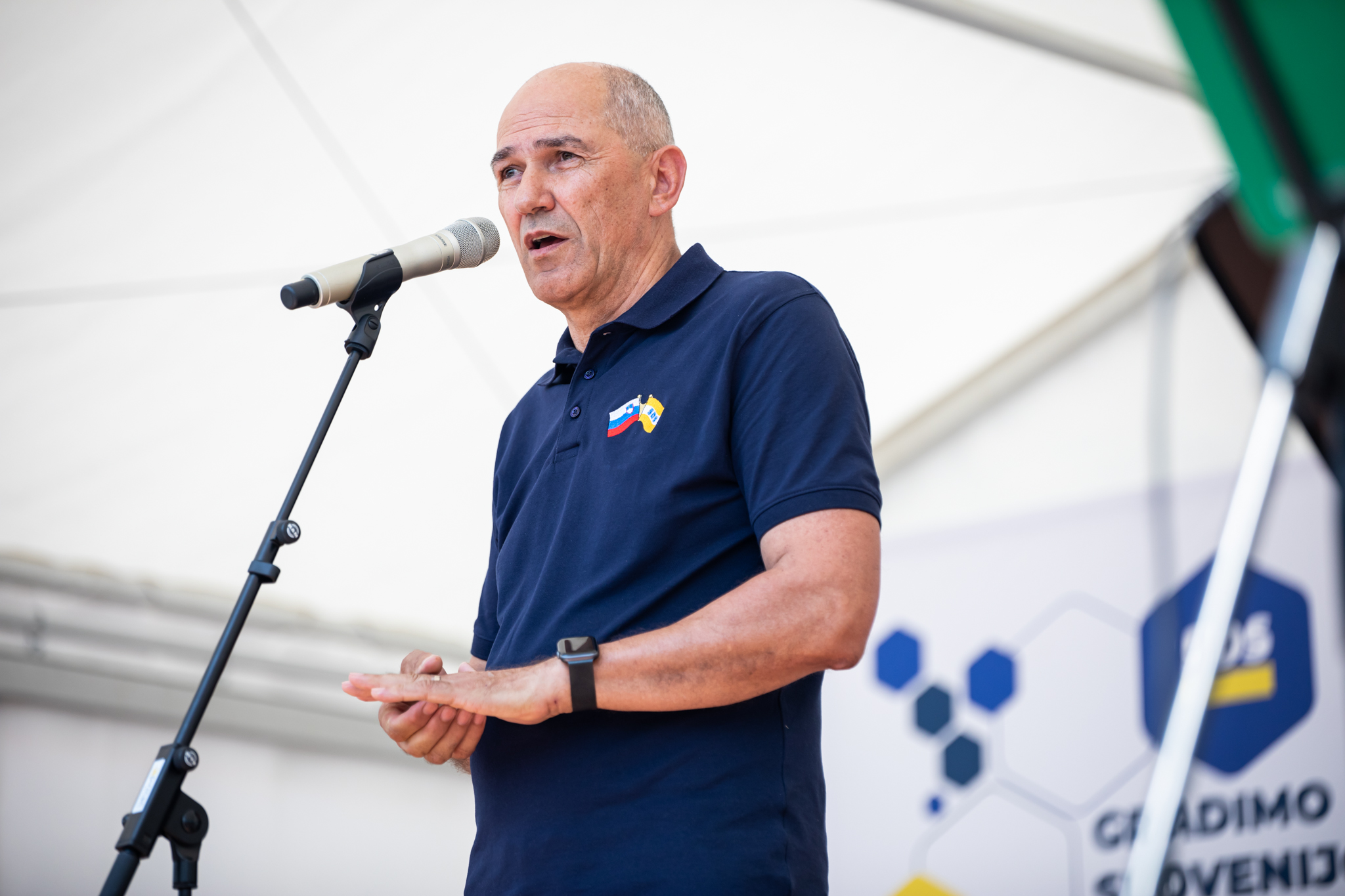 Jeseni pa so pred nami tudi volitve za predsednika oz. predsednico republike. “Mi verjamemo, da bo v naslednjih petih letih Slovenijo vodil predsednik,” je dejal Janša, čemur je sledil bučen aplavz. Dodal je: “Pravijo, da se še nikoli ni zgodilo, da po noči ne bi prišlo jutro. Torej po tej zatemnitvi, ki je nastala aprila na državnozborskih volitvah, lahko velik korak k temu, da bo to jutro čim prej nastopilo, naredimo jeseni s tem, ko podpremo in pomagamo neodvisnemu kandidatu za predsednika države Anžetu Logarju, da zmaga.”