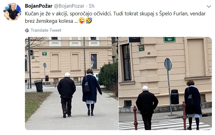 Istočasno pa je Bojan Požar tvitnil fotografijo zadnjega partijskega šefa, ki je skupaj s Špelo Furlan v akciji. Skupaj sta se nahajala blizu slovenskega parlamenta.