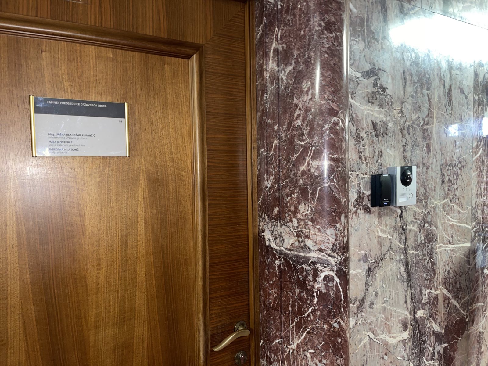 Če kamere in zvonca pred pisarno predsednice Državnega zbora RS Urške Klakočar Zupančič prej ni bilo, je sedaj vse drugače. Za montažo kamere in zvonca se sicer po navadi ljudje odločajo, ko želijo vzpostaviti nadzor nad tem, kdo jih obiskuje. Na ta način se je mogoče spretno izogniti nezaželenim obiskovalkam in obiskovalcem. Gre torek za nekakšno zaščito, v pisarno pa je mogoč vstop le preko tajnice. To pa še ni vse, saj naj bi si naročila še nekatere dodatke za svojo pisarno.