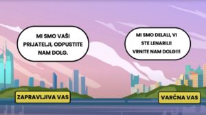 V oddaji Večer v Kavarni Hayek je bila prikazana animirana zgodba o Zapravljivi vasi in Varčni vasi. (foto: Screenshot)