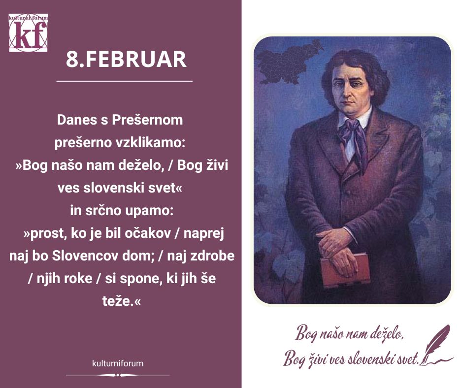 Želimo vam, da pesnikov klic po sožitju med nami in njegova globoka ljubezen do domovine ne navdihujeta nas in naše Slovenije le na Prešernov dan, naš državni kulturni praznik, ampak da bosta vse leto sooblikovala naše misli, besede in dejanja.