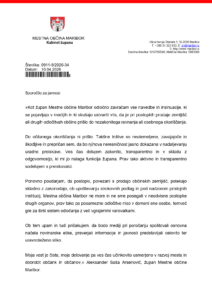 Pri tem naj bi sodelovala tudi podžupanova sestra Maja Reichenberg Heričko, ki bi svoje dosegla na upravni enoti. Jovanović v zadevi nastopa kot ovaditelj. Spodaj je priložen tudi uradni odziv mariborskega župana Arsenoviča.