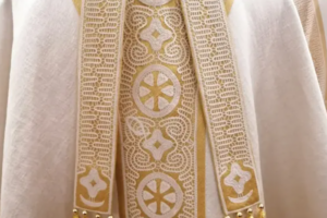 Mira pa, kot je poudaril Peljhan, predstavlja vrhunec krojaškega dela. “Pri izbiri barve mašnega plašča smo izhajali iz barve čipke, ki je umazano bela, in iskali enako enako barvo osnovnega blaga in kontrastnega, da bo čipka vidna. Zlato-bela kombinacija izžreva veselje, slovesnost, upanje novega začetka,” je še povedal Peljhan.