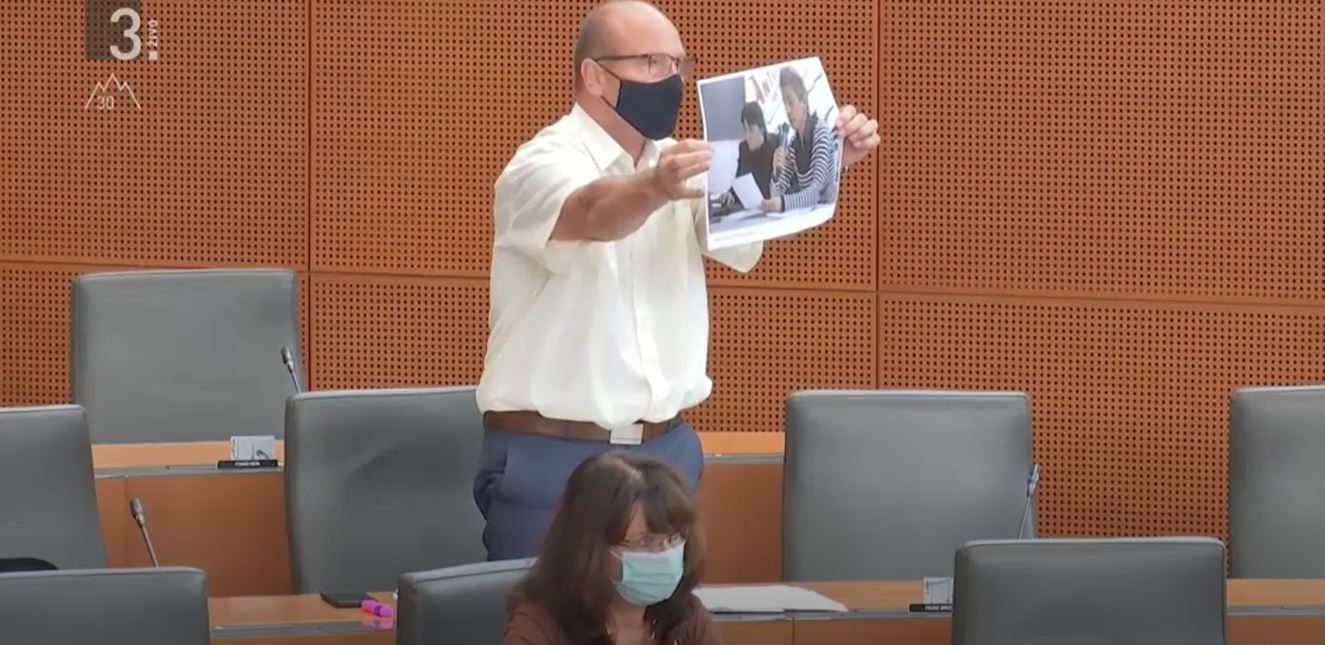 Poslanec SDS Marijan Pojbič je na seji poudaril, da je dejstvo, da so prav vsi prisotni, med drugim tudi Matjaž Nemec, Marko Bandelli in Lidija Divjak Mirnik, slišali, kako je minister Simoniti obsodil prav vse ekstremizme. Obenem pa je Sukičevi kot očitek odvrnil, da je naravnost smešno, da seje sklicuje nekdo, ki nastopa na okrogli mizi Antife, kjer je bila celo govorka. Sukičeva je želela vedeti, kakšen je bil naslov okrogle mize in o čem se je govorilo. “Poglejte si sliko in si preberite. Da vam tudi to ni dovolj, da zavajate slovenski narod,” je Pojbič odgovoril in sliko pobližje pokazal Sukičevi.