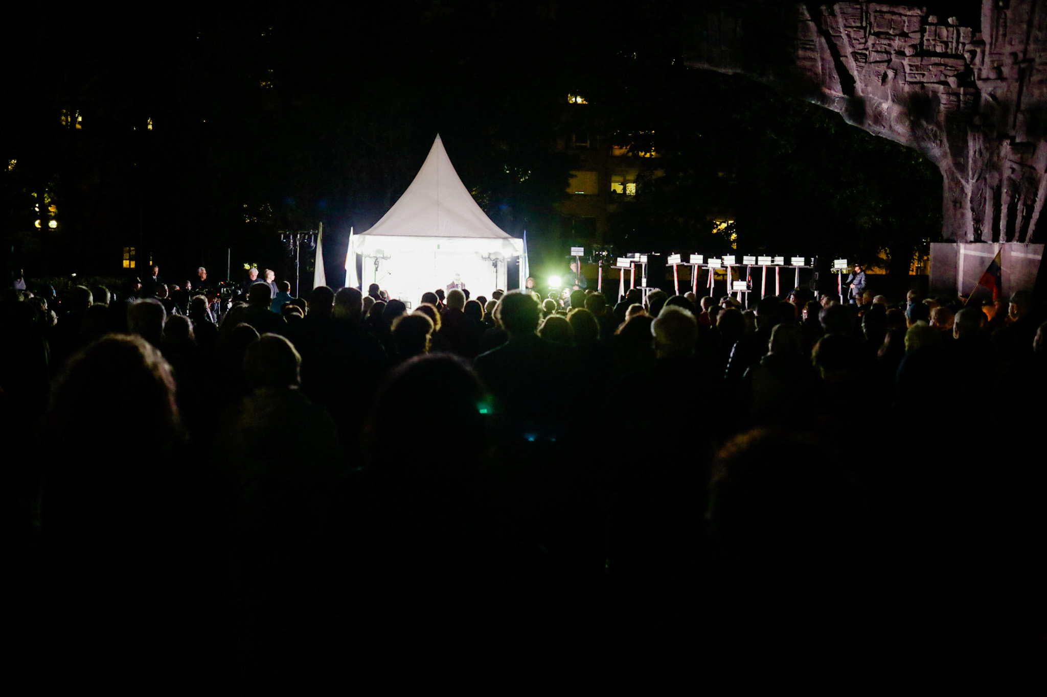 Dodal je še: »Vsi ostali tisočeri pobiti ne obstajajo v nobeni uradni evidenci Republike Slovenije. Za državo so še vedno ne-osebe. O njih, ki so prestali tolikšno krivico, tolikšno bolečino smrti, država Slovenija ne ve, kdo so in od kod; ne ve, kako jim je ime; ne ve, koliko jih je. Čigava je ta država? Mar smo tujci v njej? Tako ne more ostati. Zato pošiljamo ljudje dobre volje naši državi nujen poziv, ki ga bomo jutri v Državnem zboru predali predsednici Komisije za peticije, človekove pravice in enake možnosti. Državljani Slovenije ob dnevu spomina na žrtve komunizma v spoštovanju njihovega trpljenja in krivične smrti pozivamo državo Slovenijo, naj pripravi javno dostopno evidenco žrtev komunističnega nasilja nad Slovenci. Breme dokazovanja smrti svojih bližnjih mora z ramen svojcev prevzeti država in po uradni dolžnosti to storiti sama. Mnoge žrtve niti nimajo svojcev. Država naj z vpisom v evidenco žrtev vsem pokojnim zagotovi ne le elementarno pravičnost, marveč jim izkaže osnovno spoštovanje z uradnim priznanjem, da so te osebe nekoč živele in so zdaj pokojne. Tako bodo žrtve komunizma vsaj uradno ponovno vključene v slovensko občestvo. Seveda je tukaj še mnogo tistih, ki so zagnano pomagali pri organizaciji: moralno, duhovno in materialno. Bog povrni. Na koncu: dragi navzoči na trgu: brez vaše empatije in razumevanja resnice, bi se moraste misli v nas samo še bolj kopičile. Tukaj smo zaradi upanja in veselja do življenja, ki si ga ne bomo pustili vzeti. Naj to izraža zadnja pesem, ki jo bomo zapeli kar vsi skupaj.«