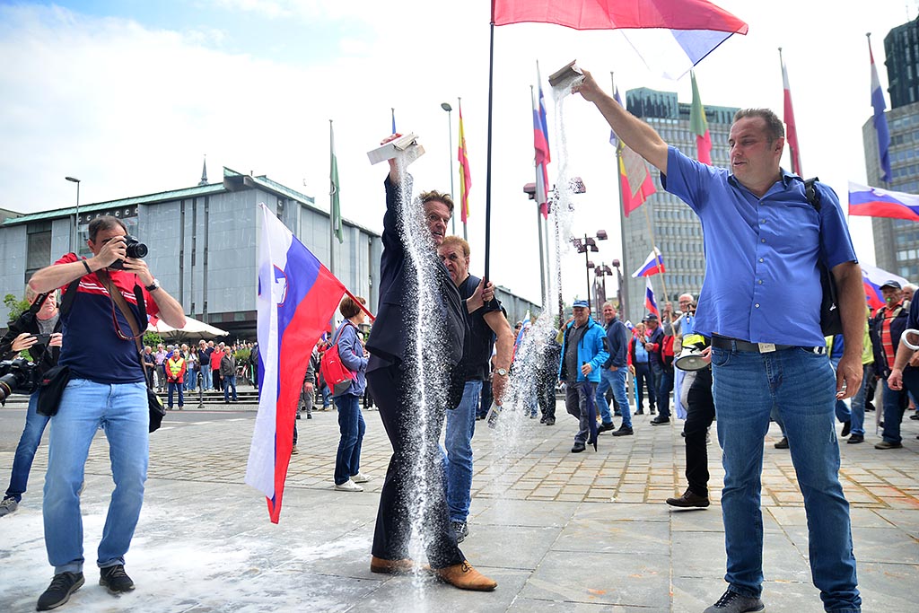 Glavni pobudnik shoda Pavel Rupar je udeležence pozval, naj vsak s seboj prinese kilogram soli – to so stresli pred vrata državnega zbora »za tiste, ki je v glavi nimajo«. Sol bodo pozneje podarili kmetom za živino.