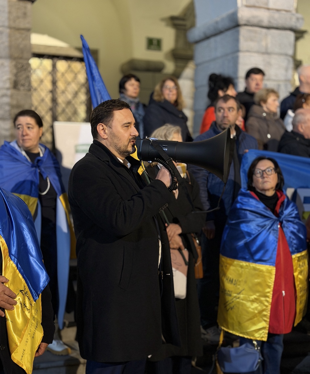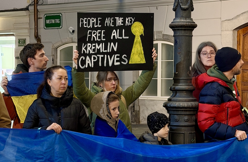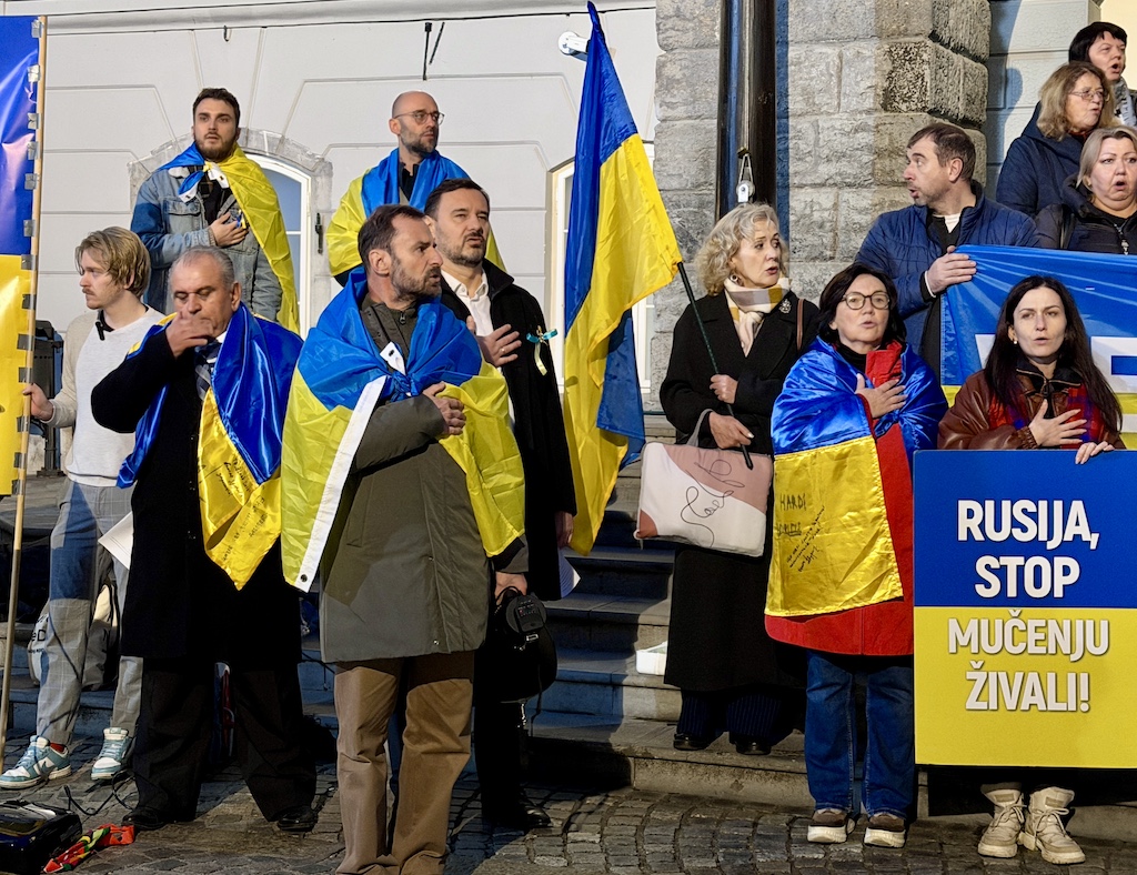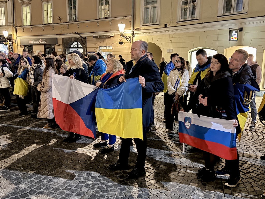 Včeraj, ob četrti obletnici ruske obsežne invazije na Ukrajino, se je ukrajinska skupnost v Sloveniji zbrala v Ljubljani, da bi Evropo spomnila: obstajamo, borimo se za svojo in vašo svobodo, imamo pravico do svojega mirnega doma in si prizadevamo za pravičen mir!