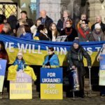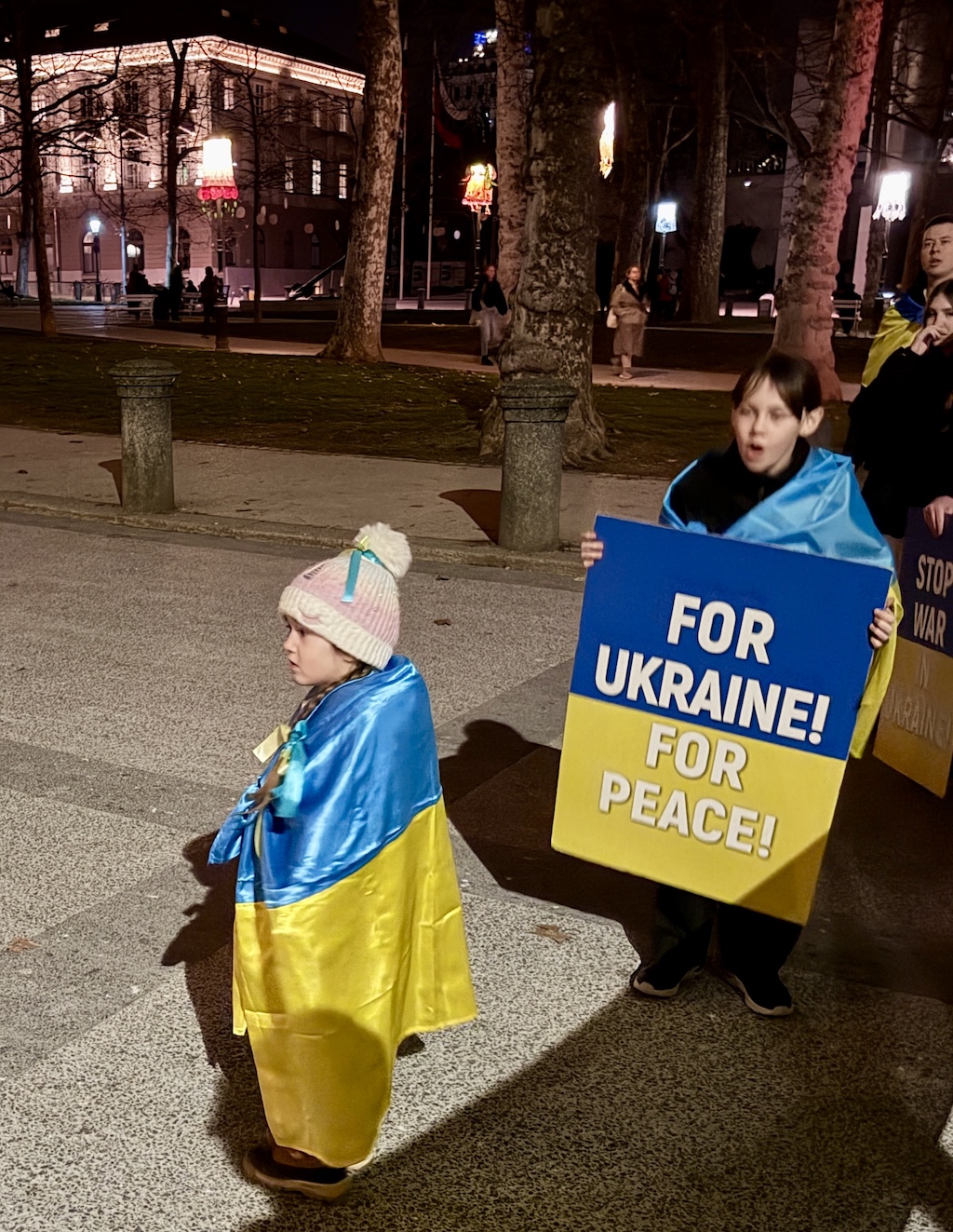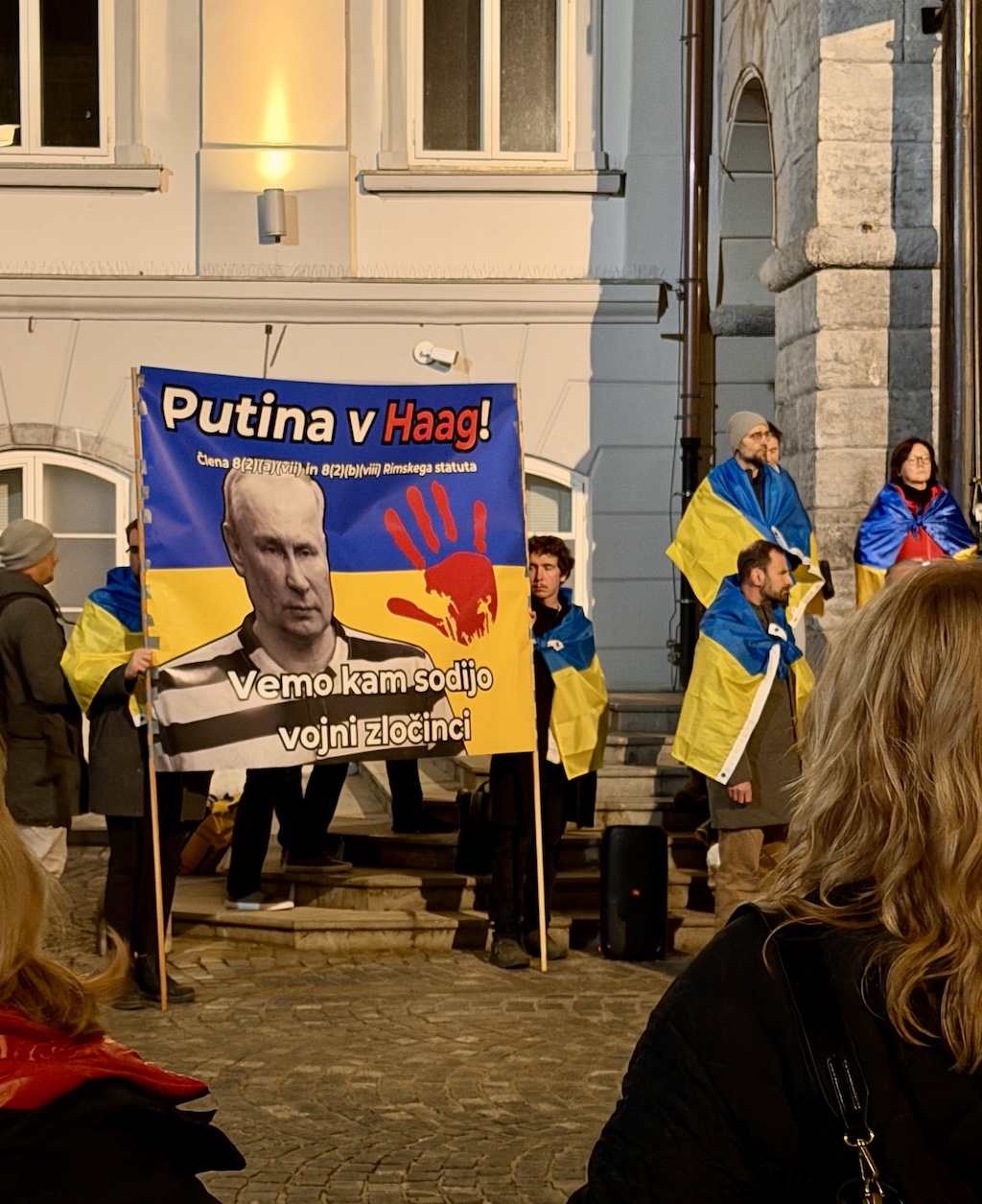 Več kot dvesto ljudi je prišlo podpret naše zahteve – trajen in pravičen mir za Ukrajino, vrnitev ukrajinskih otrok, izpustitev vojnih ujetnikov, kaznovanje vseh vojnih zločincev ter odškodnino Ukrajini za vso grozo in teror, ki ju je Rusija prinesla v našo državo.