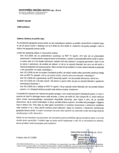 “Oba naj zato nemudoma javno prekličeta zgoraj navedene izjave in javno opravičita. V kolikor tega ne bosta storila najkasneje v roku 24 ur od prejema te zahteve, bomo začeli postopke pred sodiščem,” so še sporočili.