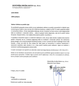 “Oba naj zato nemudoma javno prekličeta zgoraj navedene izjave in javno opravičita. V kolikor tega ne bosta storila najkasneje v roku 24 ur od prejema te zahteve, bomo začeli postopke pred sodiščem,” so še sporočili.