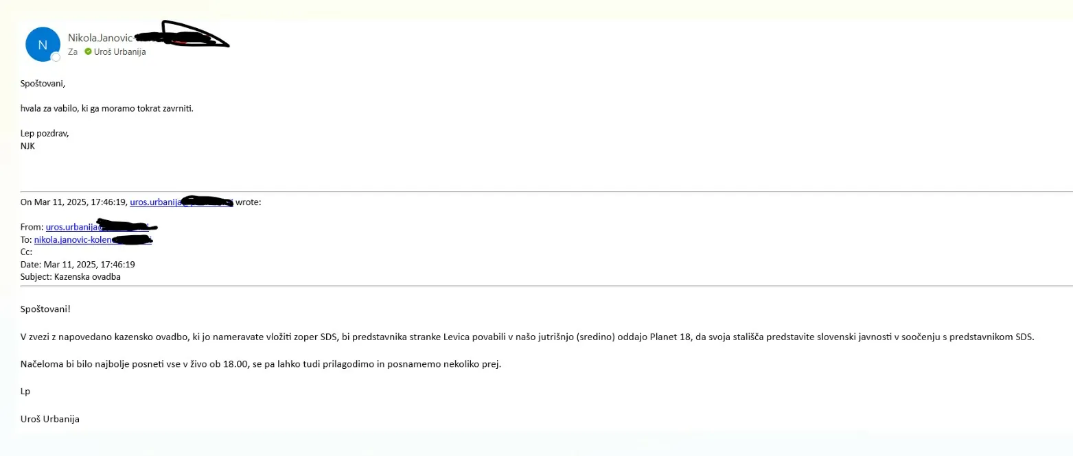 “No, resnica je malo drugačna, draga stranka Levica. Vabili smo vas na Planet TV, da bi razložili svojo kazensko ovadbo, pa ste sporočili, da vi nimate časa …” je zapisal odgovorni urednik informativne oddaje Planet 18 Uroš Urbanija, s čimer je Levico postavil na laž. Spomnimo, da je laž nesmrtna duša komunizma.