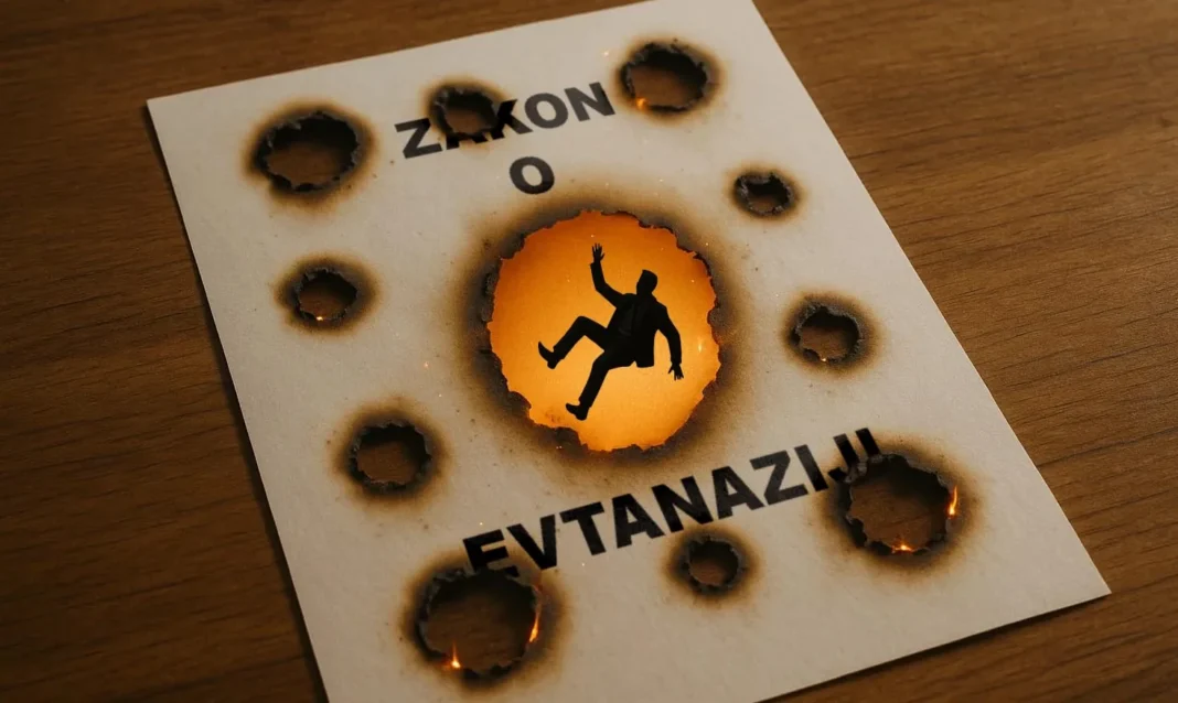 Vesna Malenšek opisuje včerajšnji klic urednice RTV, ki jo je povabila na soočenje o ZPPKŽ. Urednica je bila prijazna, a vztrajno zagovarjala zakon: da nima lukenj, da “takšni kot Tomaž”, njen sin ne pridejo v poštev, da mora biti oseba “aktivna”, in da je njen strah odvečen. Zvenelo je kot opravičevanje zakona še pred vprašanji. To jo je spodbudilo, da je zakon ponovno prebrala – po členih, stavkih in presledkih. Ni se zmotila: “zakon nima varovalk, ima luknje. In skozi te luknje bo prej ali slej padel – človek”.