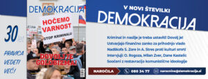 Izšla je nova številka revije Demokracija! V njej objavljamo, kako se je premier Golob še na seji novomeškega mestnega sveta sprenevedal, hkrati pa pokazal, da ga je zelo strah, saj mu je tragičen dogodek z umorom Novomeščana povsem prekrižal načrte. Premier Golob tudi po debaklu v Novem mestu ohranja podporo globoke države, ki je v boj že poslala svoje propagandne pitbule, da bi ustavili opozicijo in pokazali, da ima vlada stvari pod nadzorom. Golobova vlada nastavlja nevarno zanko vsem naslednjim vladam, saj se po novem zadolžuje celo na Kitajskem, s čimer Slovenijo postavlja v izredno neugoden mednaroden položaj. Dr. Anton Stres razkriva nevarna ozadja zakona, ki legalizira evtanazijo in ponuja mačka v žaklju. Če bo na referendumu potrjen, bo to imeli izjemno slabe dolgoročne posledice. Evropski poslanec dr. Milan Zver je v intervjuju spregovoril o aktualnih političnih razmerah, še zlasti pa o svojem boju za razkritje informacij o dogodku iz leta 2023, ko sta se srečala tedanja podpredsednica Evropske komisije in tedanji predsednik ustavnega sodišča. Z Demokracijo boste vedeli več!