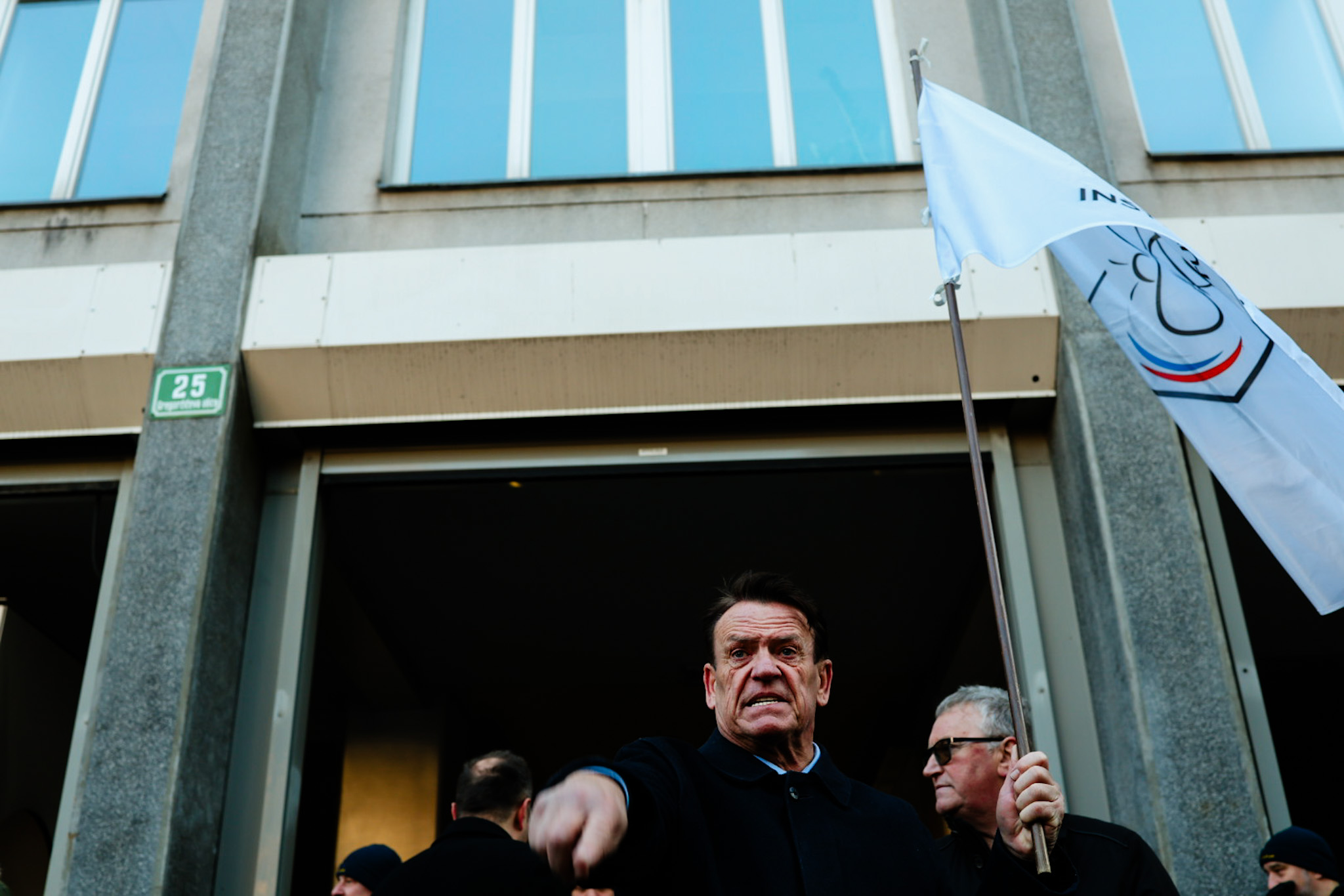 15.16 Iz množice protestnikov se sliši: Lopovi! Vlada dol! Odstranite Kidriča!