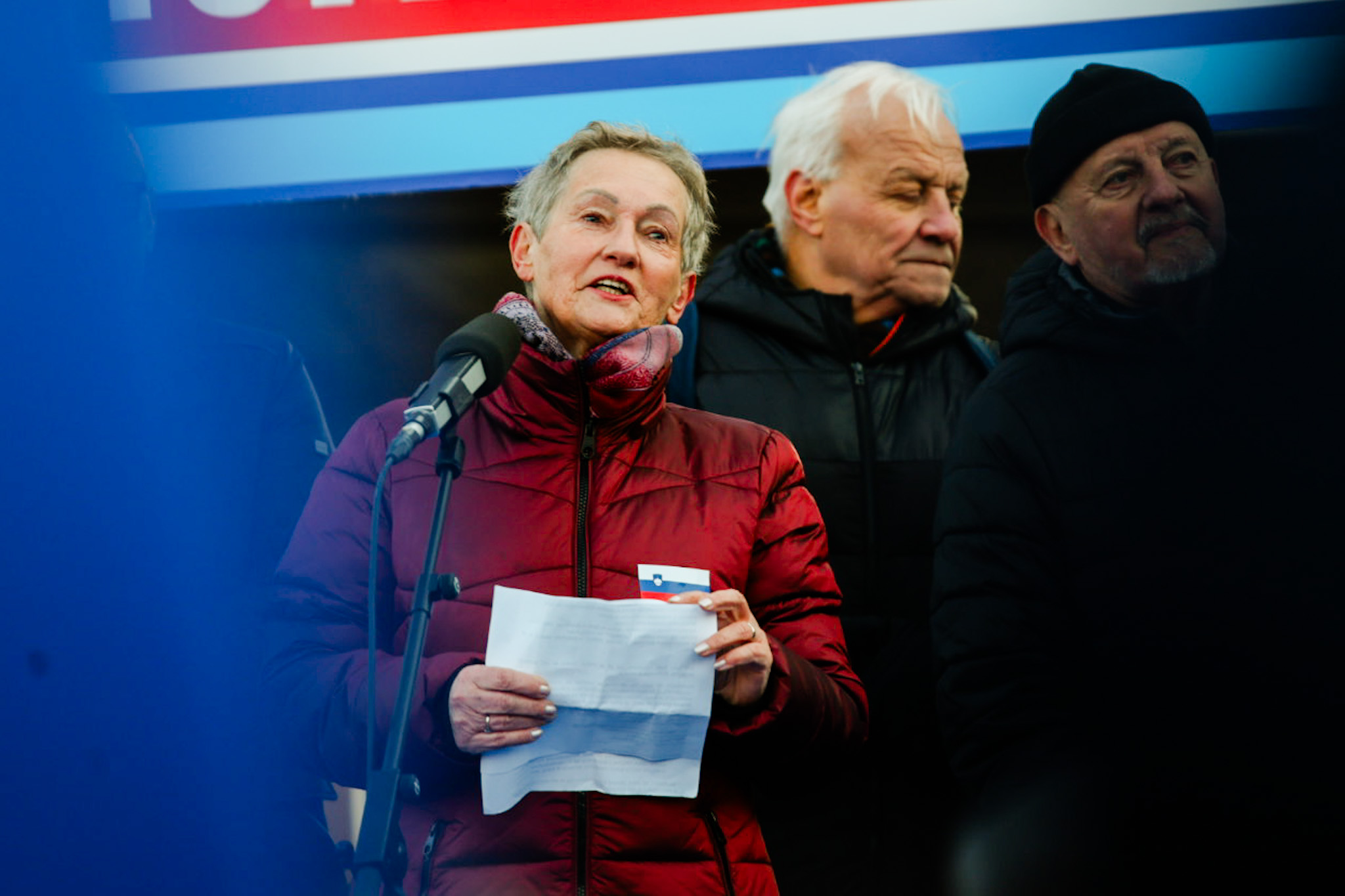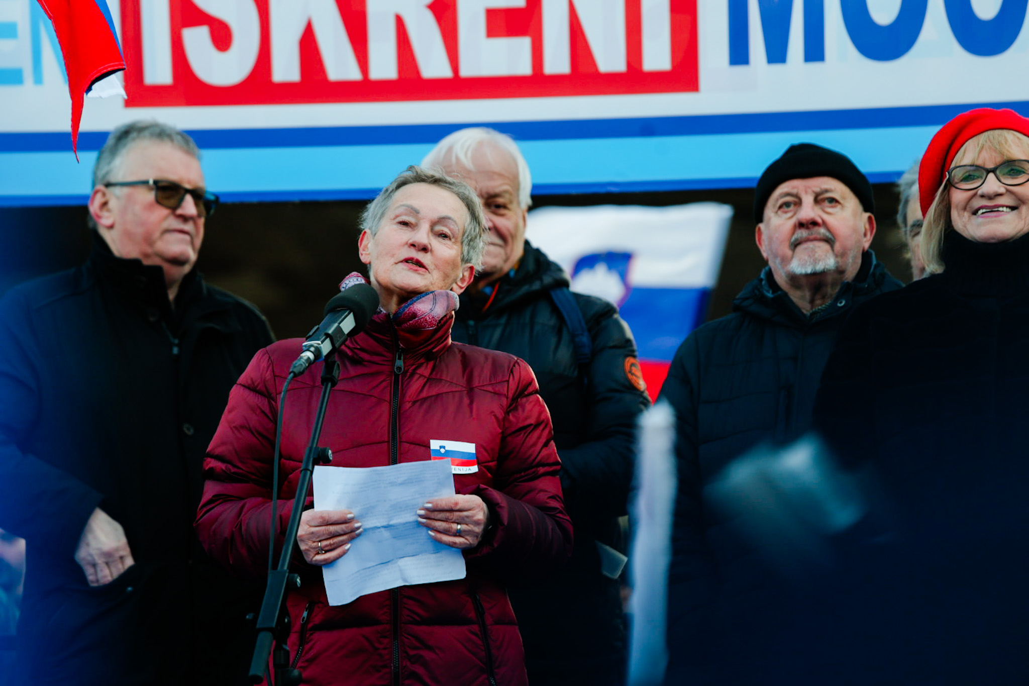 16:02 Predsednica seniorjev SDS Mojca Škrinjar: Zbrali smo se vsi, ki občutimo dnevne krivice.