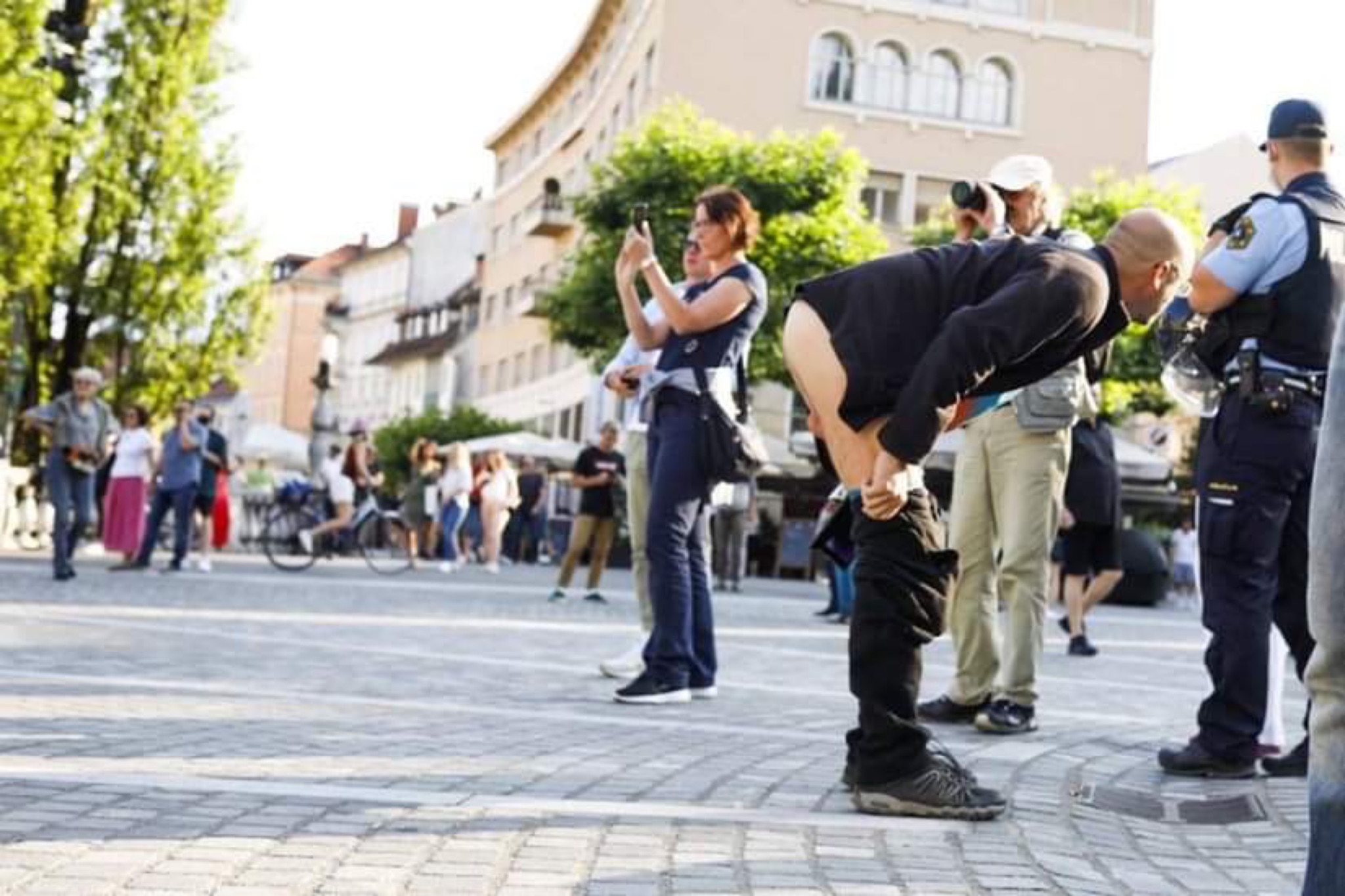 Učitelj Gregor Markič je na dan proslave pred dnevom državnosti na Prešernovem trgu vsej javnosti pokazal svoje intimne predele. (Foto: družbena omrežja)