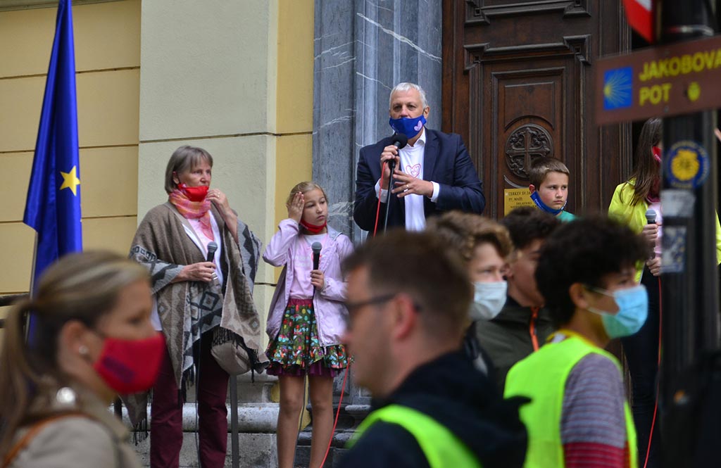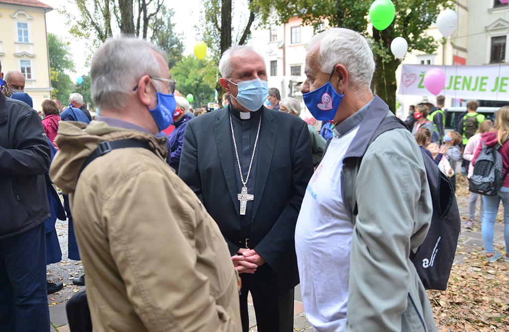 Okoli pol desete so se na Gornjem trgu začeli zbirati udeleženci Pohoda za življenje 2021, kjer se je dogodek začel z Zdravljico, ki so jo zapeli otroci. Voditeljica dogodka Urška Cankar Soares, je pozdravila nadškofa Zoreta, poslanca SDS Branka Grimsa in Tadejo Šuštar Zalar, ki so se prav tako udeležili Pohoda. Ob tem je še dejala, da jo zelo veseli, da so se jim pridružili mladi, ki so jih povabili ob lanskem srečanju: »Med letom se nam je pridružila tudi skupina mladih, ki so bili vse leto zelo aktivni v našem združenju, predvsem pa v pripravah na današnji dogodek.«.