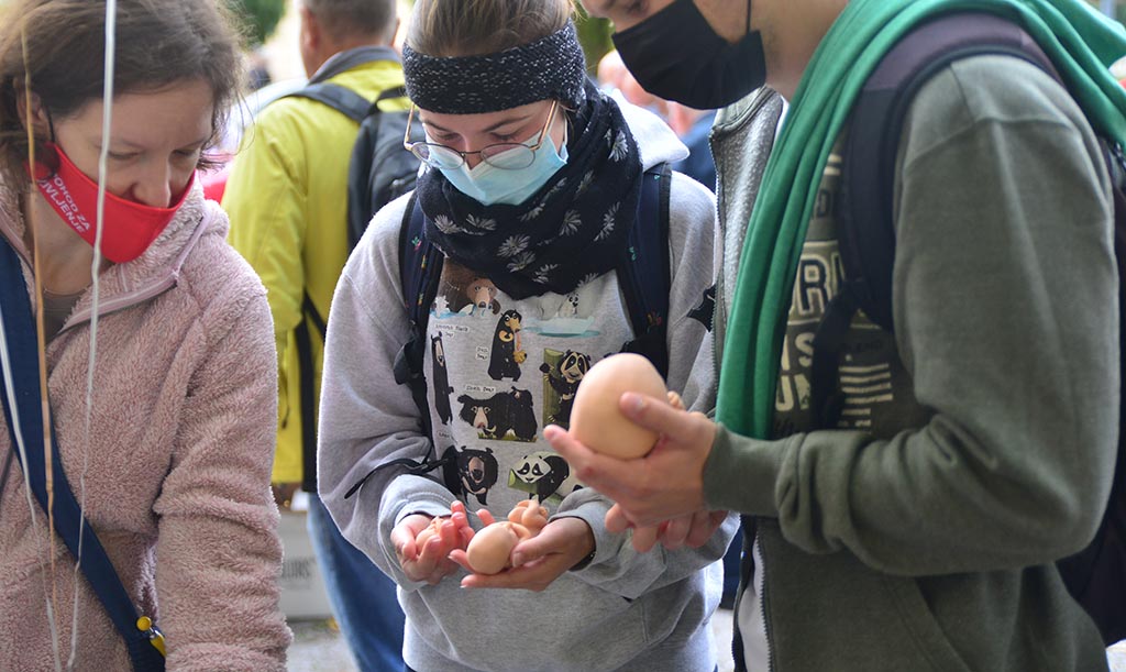 Ob 11. uri so pohodniki za življenje ob Ljubljanici krenili na pot proti Prešernovemu trgu. Slednji so, kljub kričanju nasprotnikov vztrajali s hojo in se niso pustili ustrahovati glasnim nasprotnikom. Pohodniki, večinoma družine z otroci, pojejo vesele pesmi o življenju, upanju in otrocih.