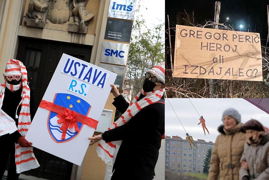 Pritiski na stranko SMC se, v značilnem mafijsko – populističnem slogu, nadaljujejo. Značilno je tudi, da osrednji mediji te pritiske predstavljajo kot simpatične, čeprav morda malo čudaške geste. Humanizirajo jih. Branijo jih brez besed, z očitno naklonjenostjo, skriti za držo “mi samo poročamo”. In kaj je simpatičnega na tem, da nekdo, kot poslancu Periču, pride na dom in tam izobesi implicitno grozilno sporočilo? Na tem, da na sedež stranke zakrinkani čudaki, Joker Style, prinesejo velikansko izdajo slovenske ustave, spet z implicitnim grozilnim sporočilom, “ste z nami ali proti nam”? Nič.