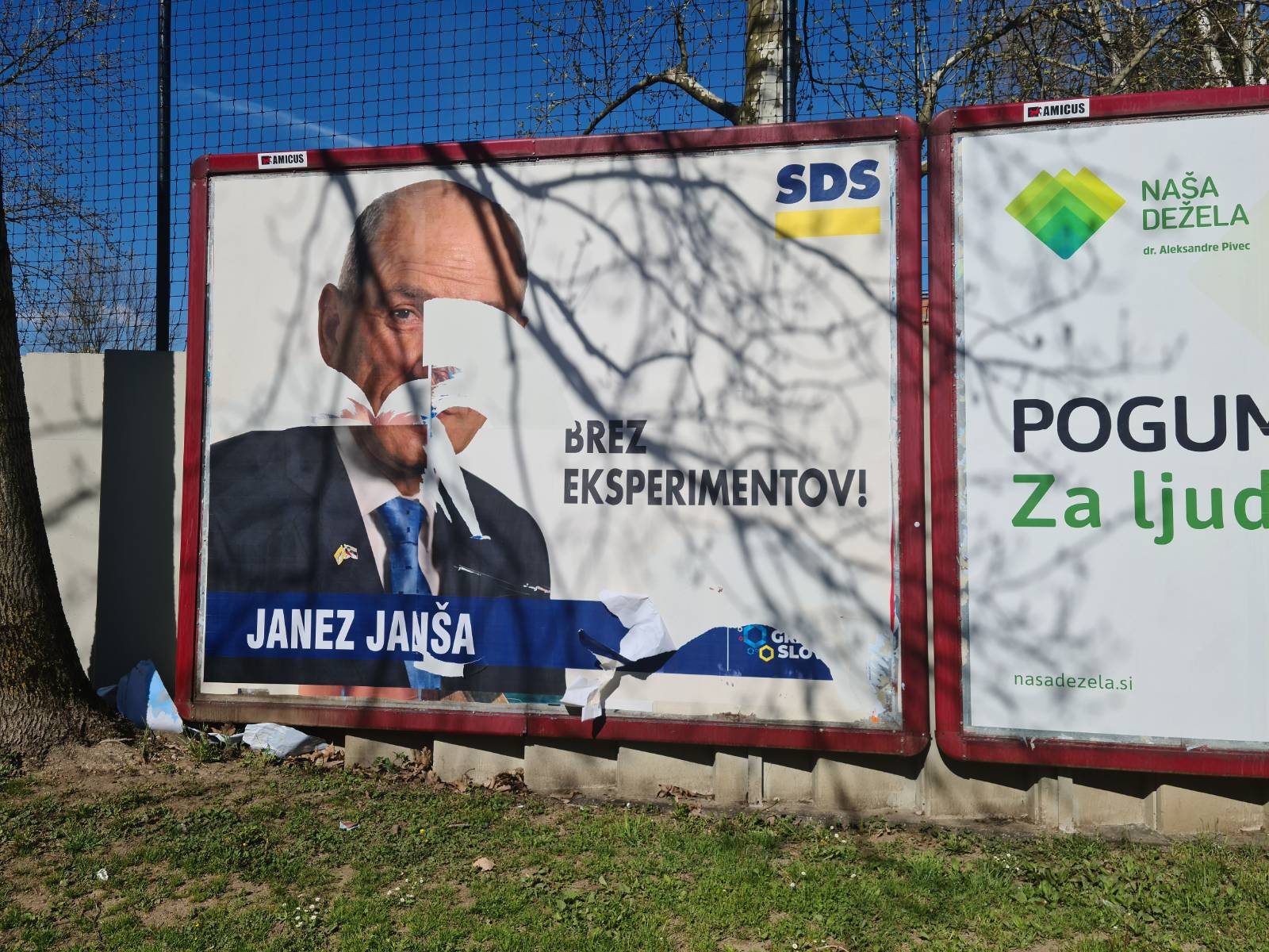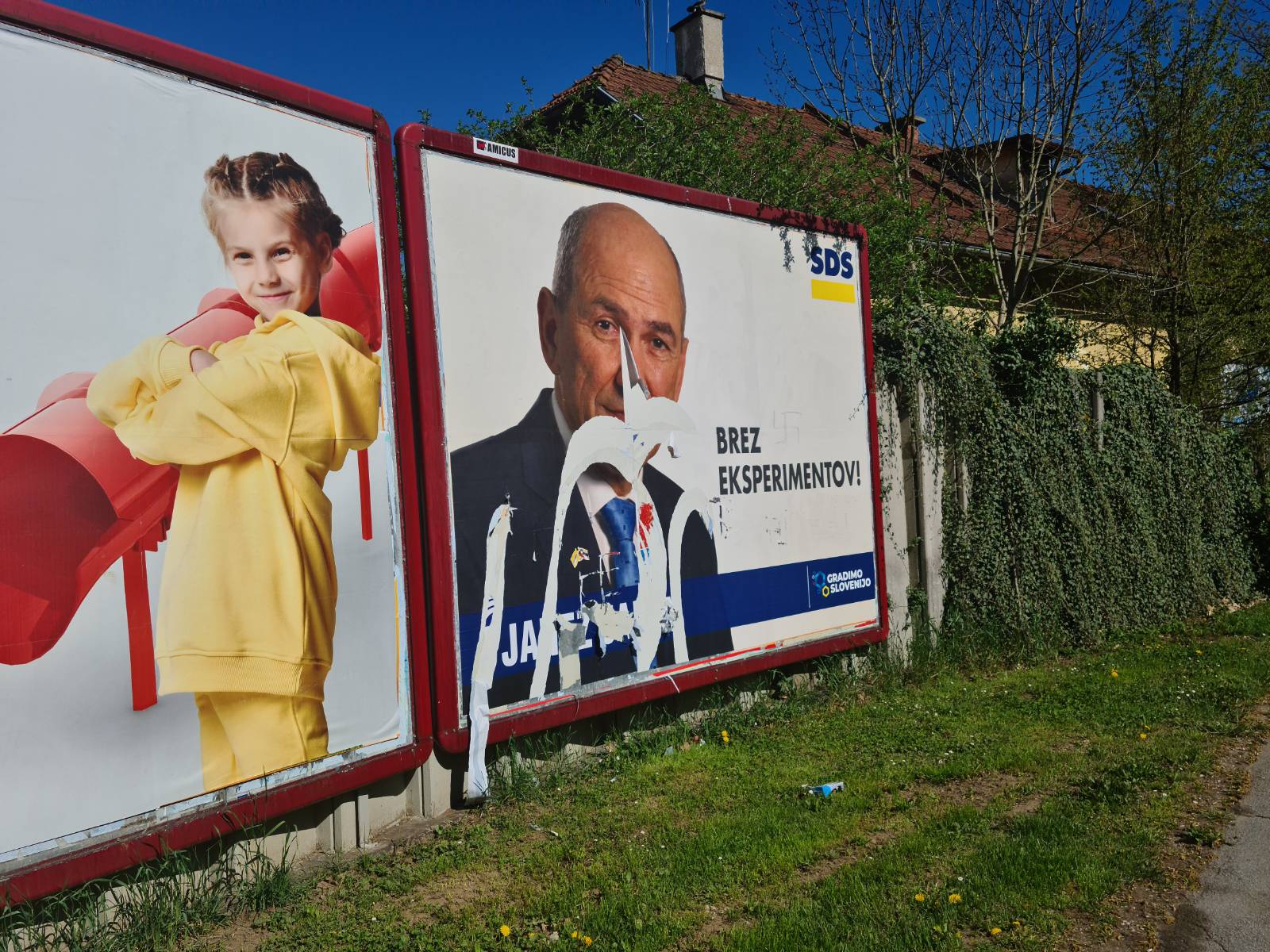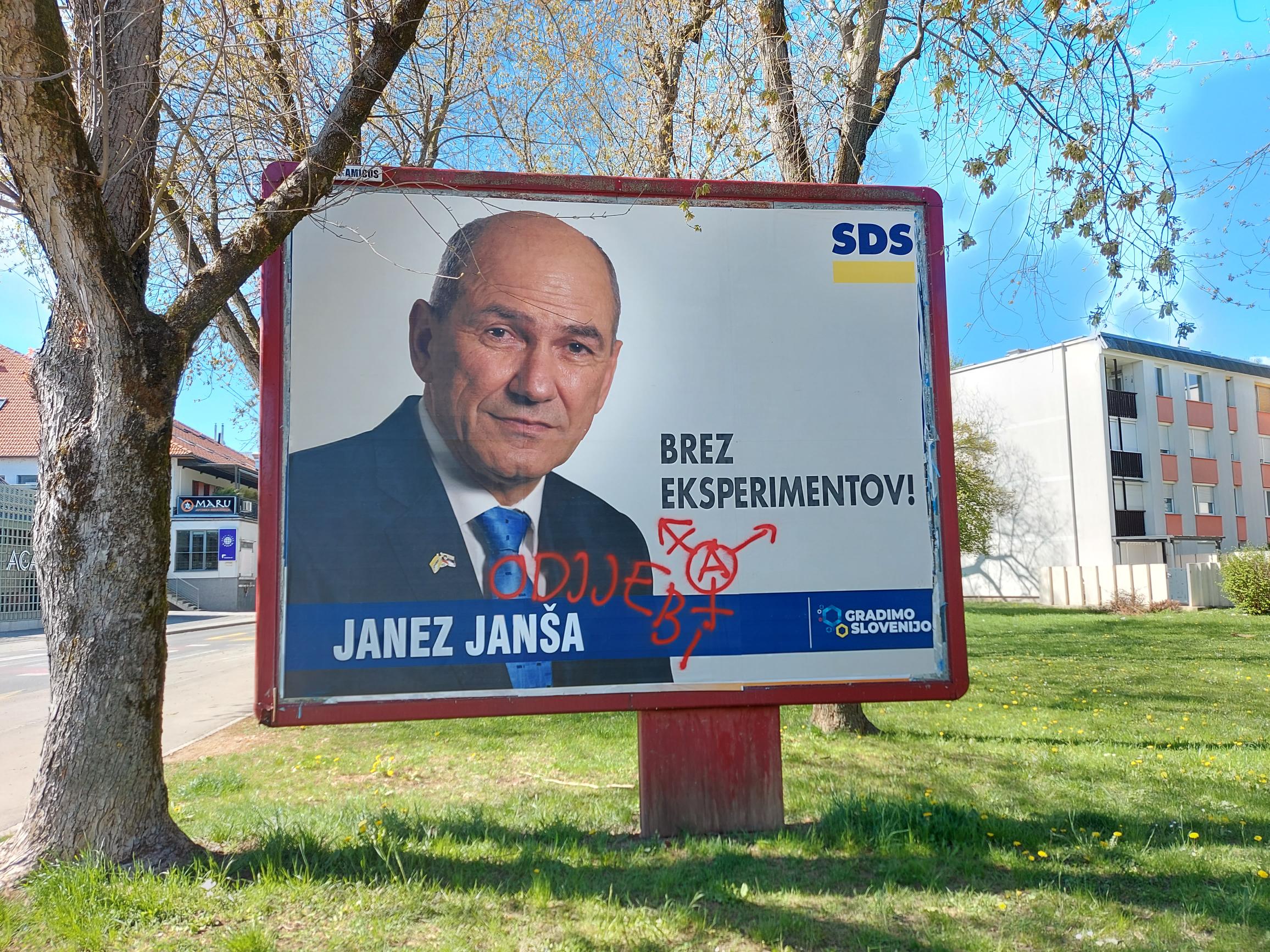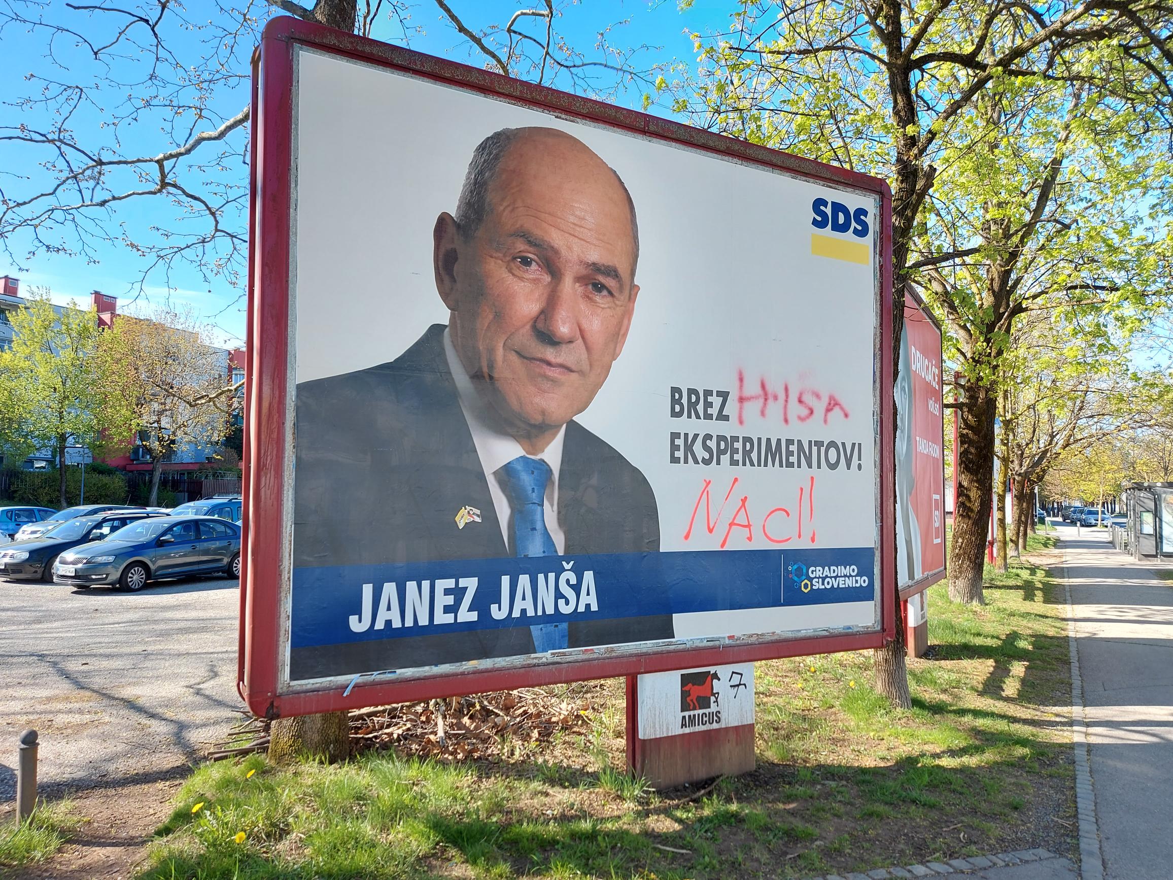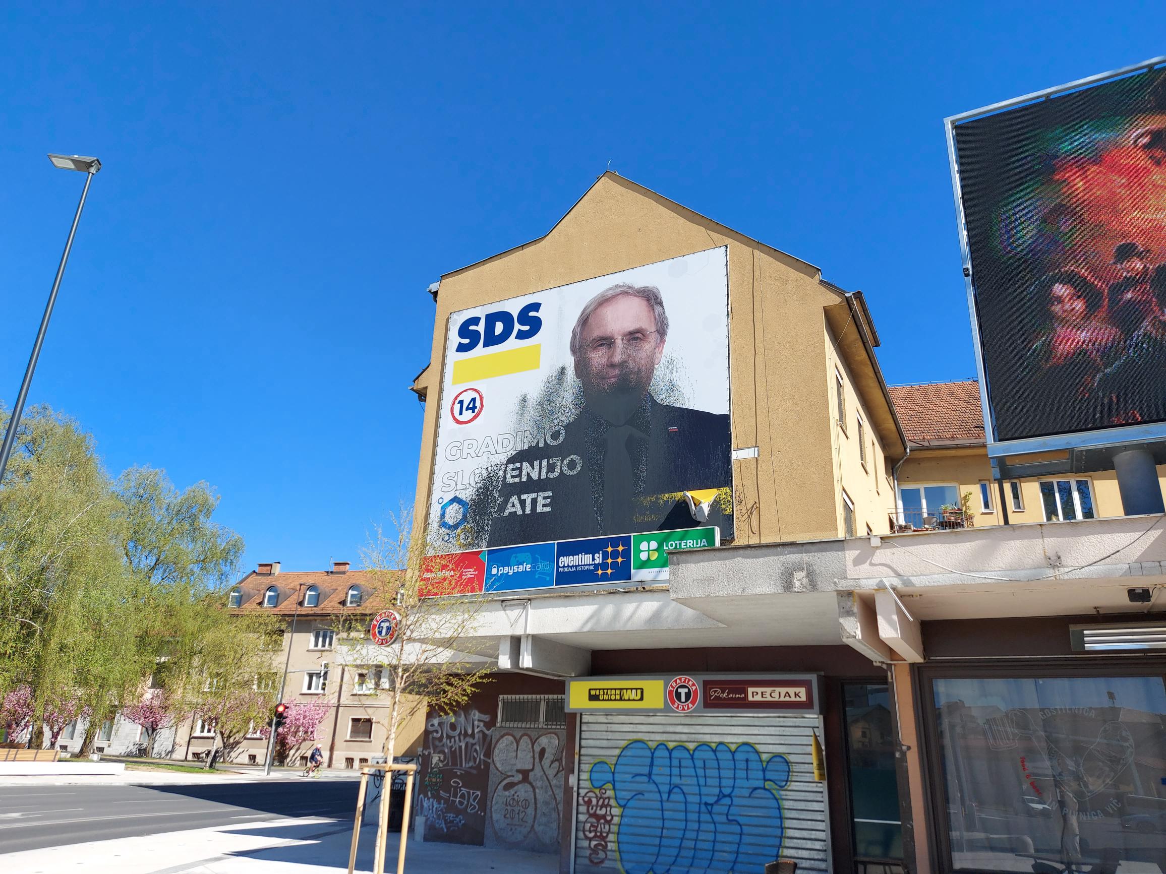 V Ljubljani smo na uničene ali popacane plakate SDS in drugih desnosredinskih političnih strank naleteli od Vojkove do Vodnikove ceste, od Viča do Bežigrada.