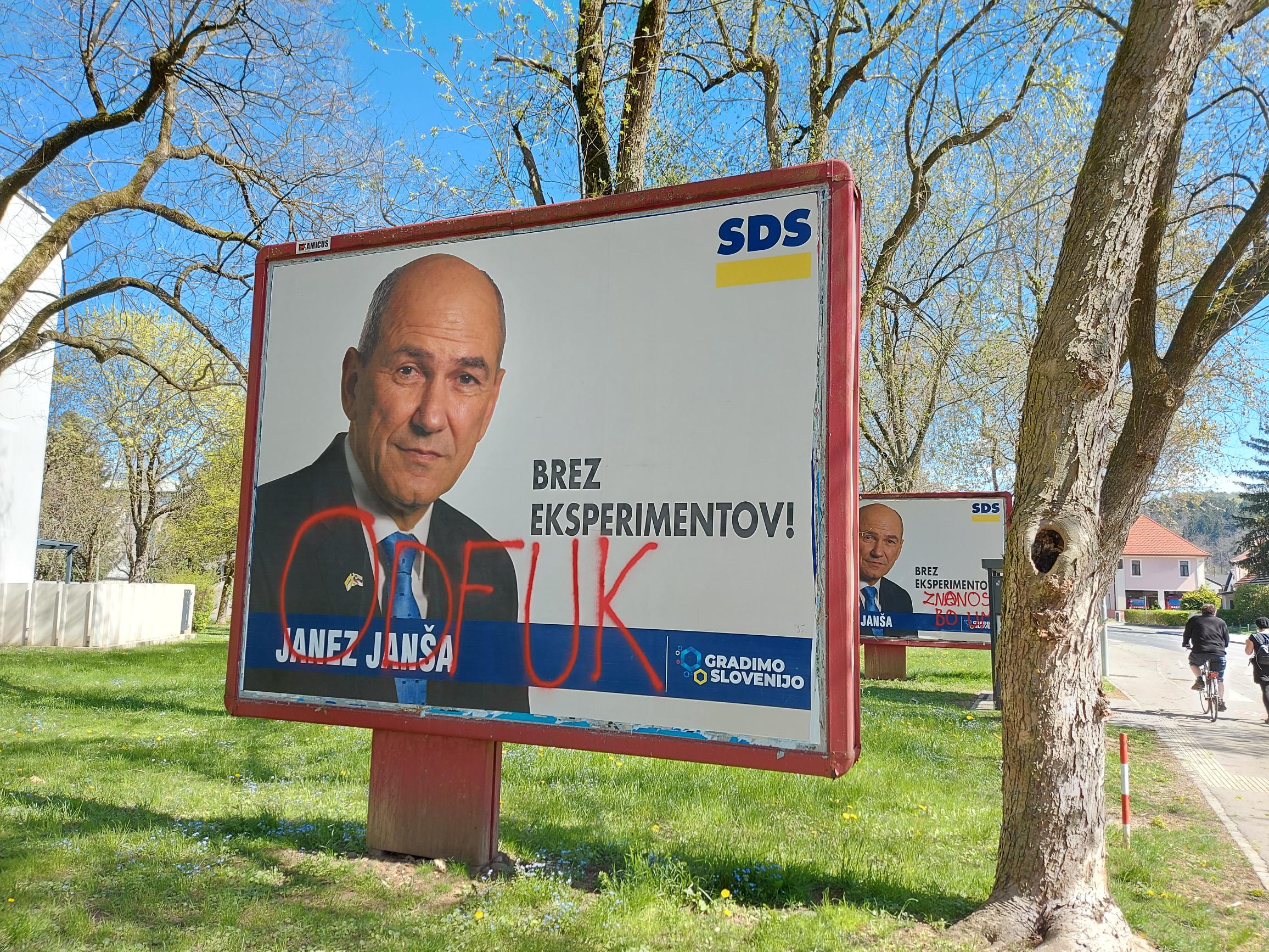 Plakati so uničeni ali »okrašeni« z nestrpnimi napisi, vse v stilu kolesariata. Očitno je to znak obupa. Če bi imela tranzicijska levica zagotovljeno zmago, se to ne bi dogajalo.