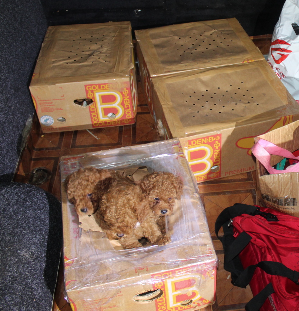 Policisti Policijske postaje za izravnalne ukrepe PU Novo mesto so na mejnem prehodu Obrežje na vstopu v Slovenijo 7. marca kontrolirali voznico kombija Mercedes sprinter romunskih registrskih oznak. Pri pregledu vozila so naleteli na nenavaden prizor. Državljanka Romunije, ki naj bi bila s sopotnikoma namenjena v Italijo, je namreč v prtljažniku prevažala enajst pasjih mladičev. Prestrašeni psički so bili nagneteni v štirih kartonskih škatlah, brez hrane in vode. Policisti so o najdbi nemudoma obvestili pristojno veterinarsko inšpektorico Uprave RS za varno hrano, veterinarstvo in varstvo rastlin. Inšpektorica je odredila odvzem psov in zoper tihotapce uvedla prekrškovni postopek.“Naši policisti so se pozanimali, kako gre malim kepicam, ki so bili odpeljane v zavetišče veterinarske bolnišnice v Brežice. Tam za njih zelo lepo skrbijo, mladički so v karanteni, številne morajo zdraviti zaradi notranjih parazitov. V zavetišču pravijo, da sta dva psička in ena psička s pasemskimi značilnostmi jazbečarja, šest psičkov in dve psički pa s pasemskimi značilnostmi pudlja. Ob odvzemu so bili stari le nekaj tednov in prešibki za zahtevno in dolgo pot. Trudijo se, da se dobro počutijo, zagotavljajo jim občutek varnosti in poskušajo kar najbolj zmanjšati posledice prezgodnjega odvzema od pasje mame. Hranijo jih z ustreznim mlekom in mehko hrano, toploto nadomešča infra rdeča luč, pozorni pa so tudi na morebitne znake otroških bolezni psov. Prepričani smo, da jim zagotavljajo tudi dobršno mero crkljanja ….” so zapisali v sporočilu policijske uprave.“Danes nam je osebje veterinarske bolnišnice v Brežicah poslalo še fotografije malih kosmatincev, ki že veliko bolj samozavestno in optimistično zrejo v prihodnost, zahvaljujoč prijaznemu in predanemu osebju veterinarske bolnišnice in našim policistom.”