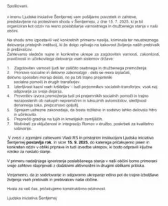 Prav tako je Ljudska iniciativa Šentjernej objavila naslednje sporočilo: