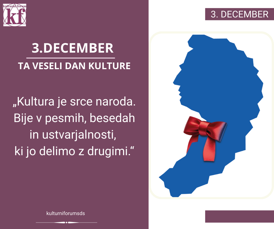 Danes je Ta veseli dan kulture, praznik, ki ima v naši državi posebno mesto. Na rojstni dan našega največjega pesnika Franceta Prešerna, literarnega očeta naše slovenske himne Zdravljice, častimo pomen kulture, umetnosti in besede, ki nas povezujejo, bogatijo naš vsakdan in vabijo v bližino resnice, lepote in dobrega. Ta dan je obenem trenutek, da razmislimo o tem, kaj kultura vsakomur med nami pomeni.