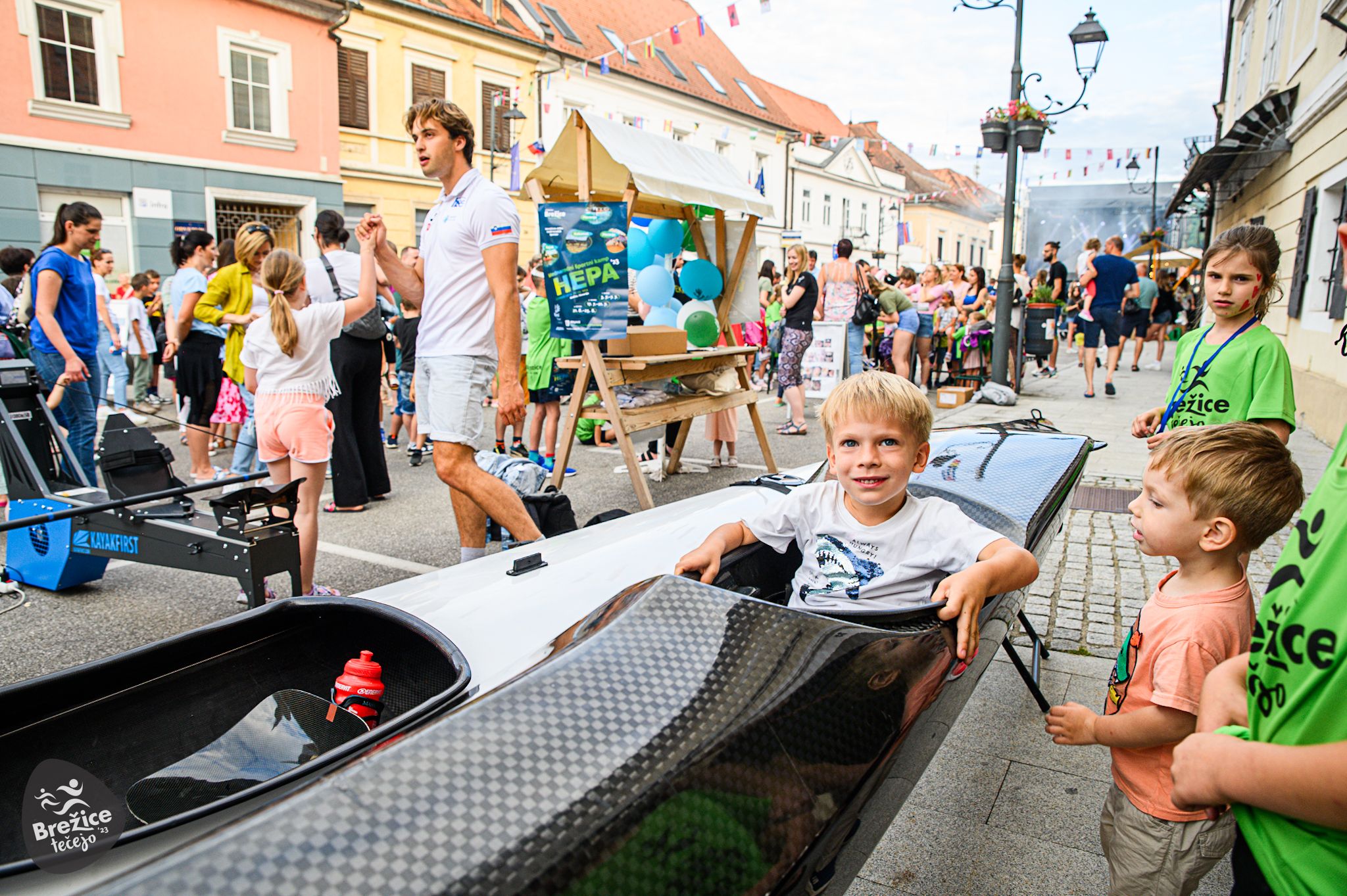 V mestu je bilo živahno že od zgodnjih popoldanskih ur, najprej so mestne ulice zavzeli najmlajši tekači teka »Brežice tečejo«. Po delu glavne brežiške ulice – od gradu proti občinski stavbi – je najprej teklo več kot 250 otrok, ki sta jih pozdravila zmagovalec lanske sezone Exatlona Marko Špiler in udeleženec prve sezone tega šova, Igor Mikić – Mišica. Udeležence teka je z zabavnimi komentarji spodbujal moderator Uroš Bitenc, družbo pa mu je ves čas delal tudi brežiški škrat Gvido. Nato se je na rekreativna teka 2 in 6 km, podalo 155 tekačic in tekačev, sledila pa je razglasitev rezultatov najboljših, nagrade je podelil župan Ivan Molan.