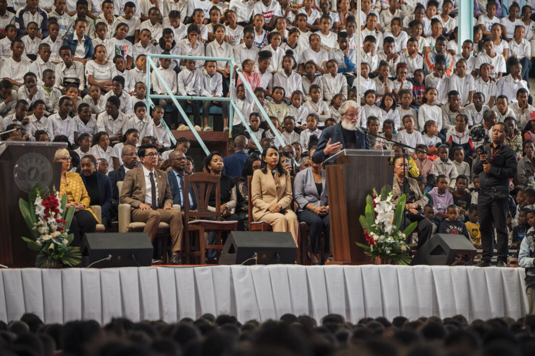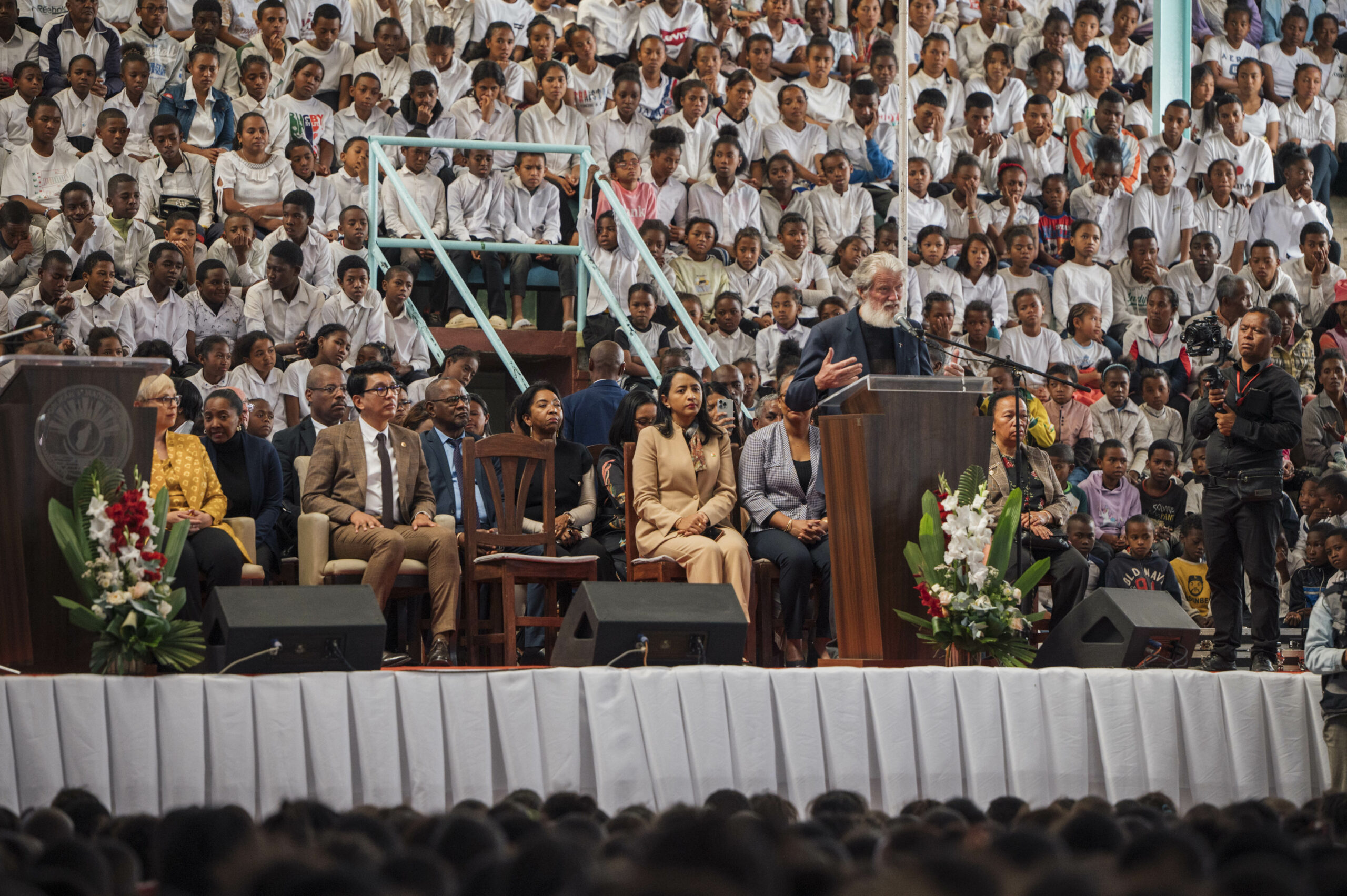 Koliko mladine, vesele, razigrane! Predsednica je bila navdušena nad morjem mladine ob odprtju in »posvetitvi« nove šole na Madagarskarju, ki je bila zgrajena s slovenskimi sredstvi. Povod zanjo je dal Peter Opeka – naš misijonar na Madagaskarju.