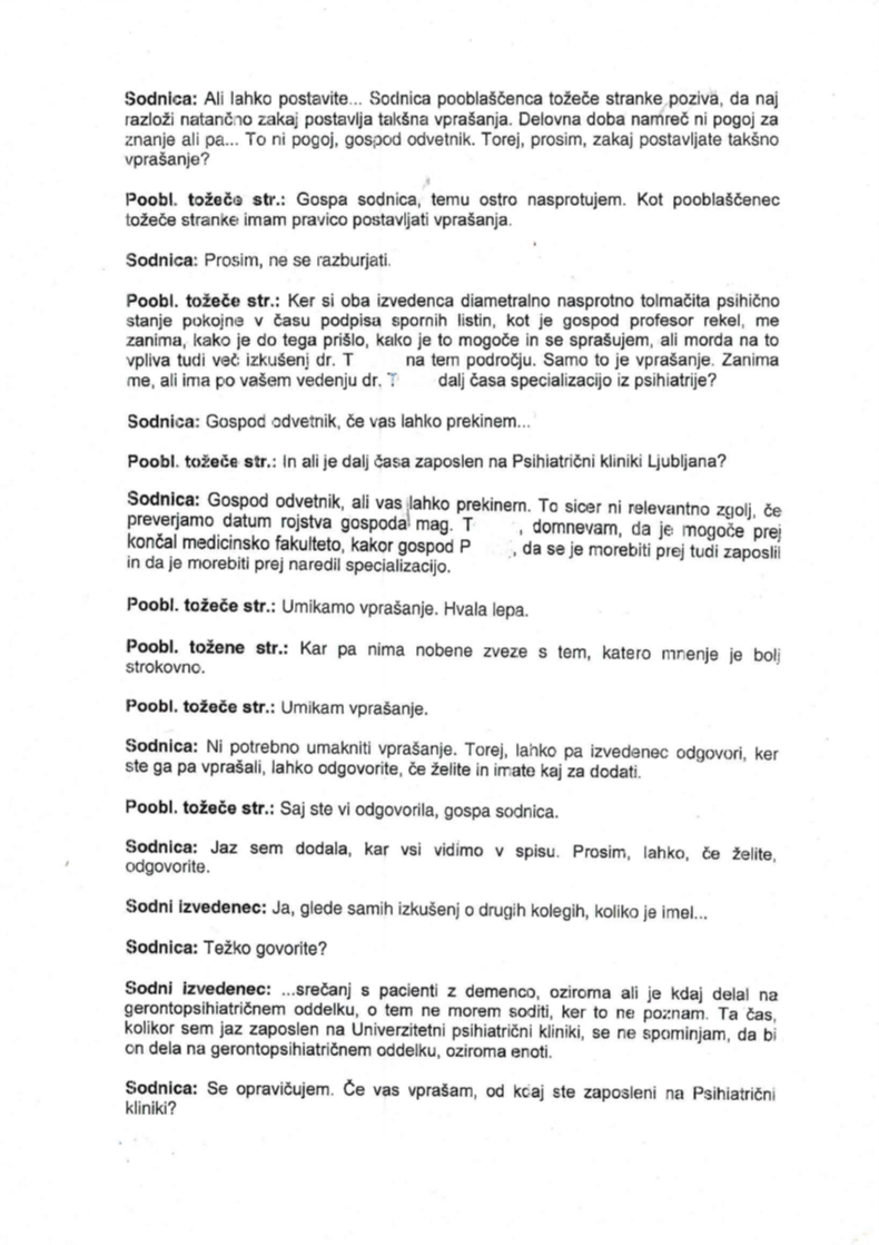 Ne glede na to, katera od obeh sodnic (U.K.Z. ali J.J.) je imela prav, pa so pri nadaljnjem procesuiranju in končnih odločitvah okrožne sodnice J.J. močno izstopale tudi številne druge nepravilnosti kot potvarjanje dokumentacije, nesposobnost vodenja zaslišanja, itd. Kot primer takšne nesposobnosti s strani okrožne sodnice J.J. prilagam tudi del iz njenega vodenja zaslišanja, za katerega dodaten komentar verjetno sploh ni potreben. Kljub številnim opozorilom in pritožbam pa se pritožbena sodišča na ta dejstva sploh niso odzvala. Vsekakor to opozarja na hudo krizo v slovenskem (pravo)sodju, katerega vzrok je tudi strokovna neusposobljenost številnih naših sodnikov.