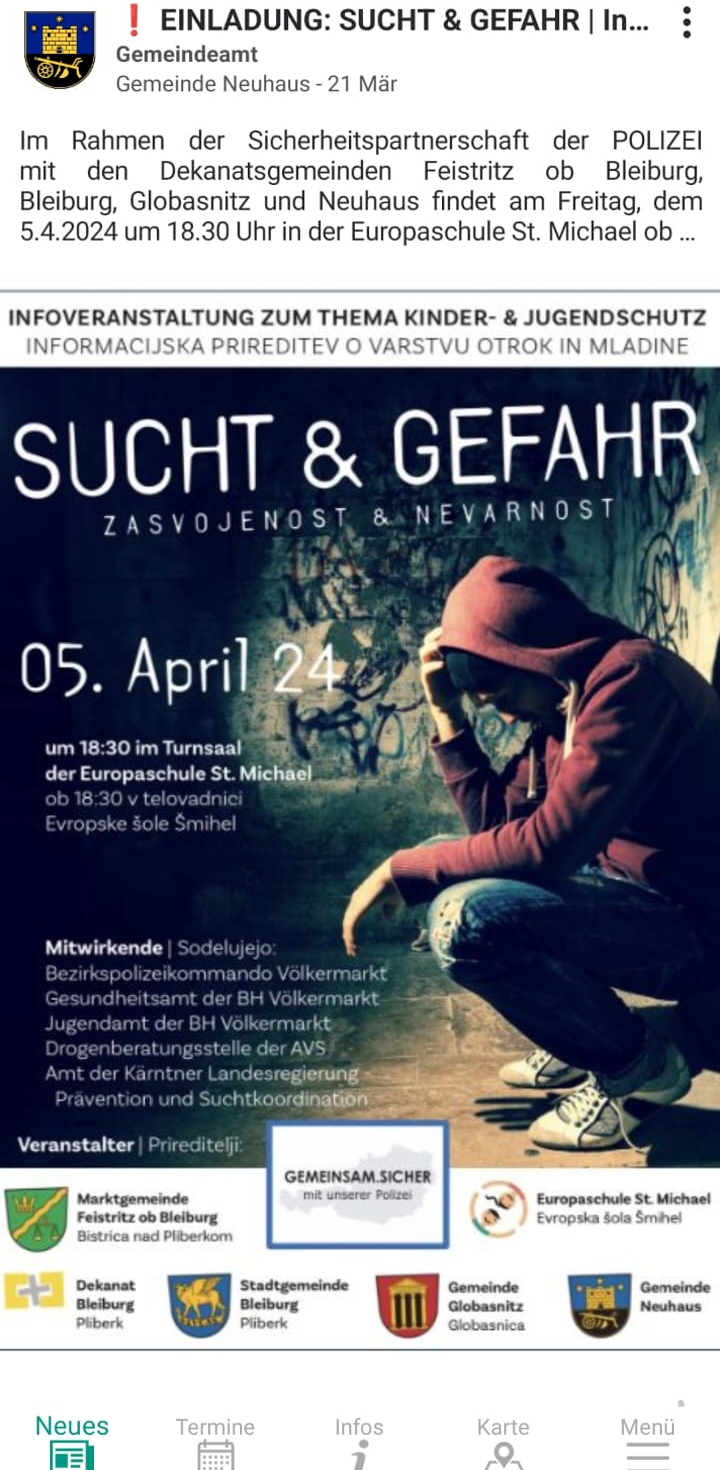 Župan občine Neuhaus/Suha v okraju Völkermarkt/Velikovec je na občinski spletni strani https://neuhaus.gv.at/news očividno manipuliral.