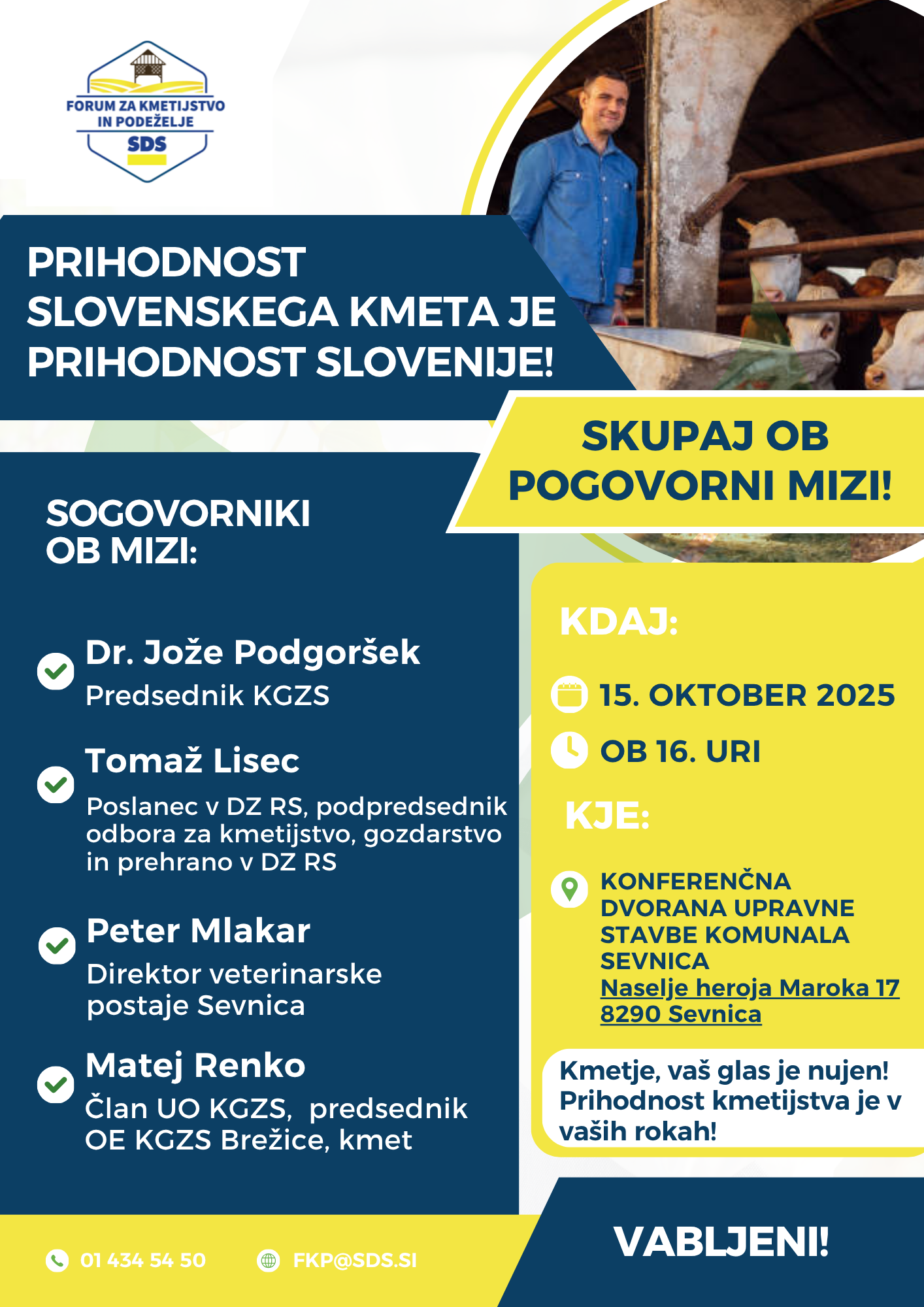 Zato vabljeni, da skupaj poiščemo poti, kako okrepiti podporo kmetom in mladim prevzemnikom kmetij ter zagotoviti,