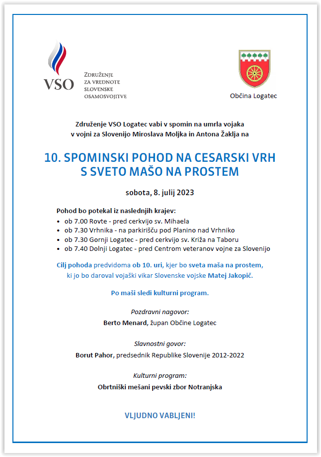 (VABILO) Vabljeni na spominski pohod z mašo na prostem Prejeli smoSlovenija 7. julija, 2023 Share FacebookTwitter (Foto: Matic Štojc Lomovšek) Piše: VSO Vabljeni na spominski pohod z mašo na prostem. Več informacij spodaj. Share FacebookTwitter PODPRITE DEMOKRACIJO!Drage bralke, dragi bralci, donirajte Demokraciji in podprite pluralnost slovenskega medijskega prostora! Donacija TagsCesarski vrhmašavso Please enable JavaScript to view the comments powered by Disqus. Fokus (KOMENTAR) Razveljavitev referenduma za laži Kremlja Gašper Blažič - 8. decembra, 2025 Fokus (PREJELI SMO) Totalitarno mesto Velenje obglavljeno – vabljeni na shod v soboto, 13. decembra Gašper Blažič - 8. decembra, 2025 Fokus Poreferendumska levičarska histerija Gašper Blažič - 8. decembra, 2025 Fokus V tiskani izdaji Demokracije preberite: Očitki na račun ministra Simona Maljevca se stopnjujejo Gašper Blažič - 8. decembra, 2025 Sorodne vsebine Fokus (KOMENTAR) Razveljavitev referenduma za laži Kremlja 8. decembra, 2025 Fokus (PREJELI SMO) Totalitarno mesto Velenje obglavljeno – vabljeni na shod v soboto, 13. decembra 8. decembra, 2025 Fokus Institucionalna vladna »evforija« se stopnjuje: rastejo »parkirišča« za odslužene kadre 8. decembra, 2025 Fokus Bolni veteran vojne za Slovenijo zbira donacije, vlada pa pošilja denar v Palestino in Veliko Kladušo 7. decembra, 2025