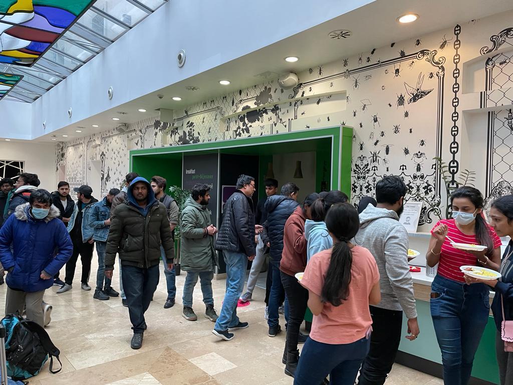 Potem, ko so nastanili prve begunce Indijske študente iz Ukrajine v Budimpešti. Je Restavracija Indijska Maharaja Budapest poskrbela za »free meal – guru da langar« dostavo hrane vsem študentom beguncem.